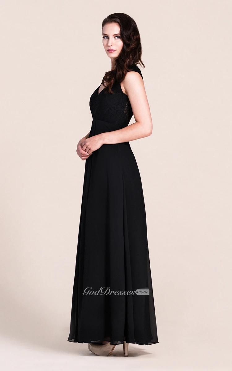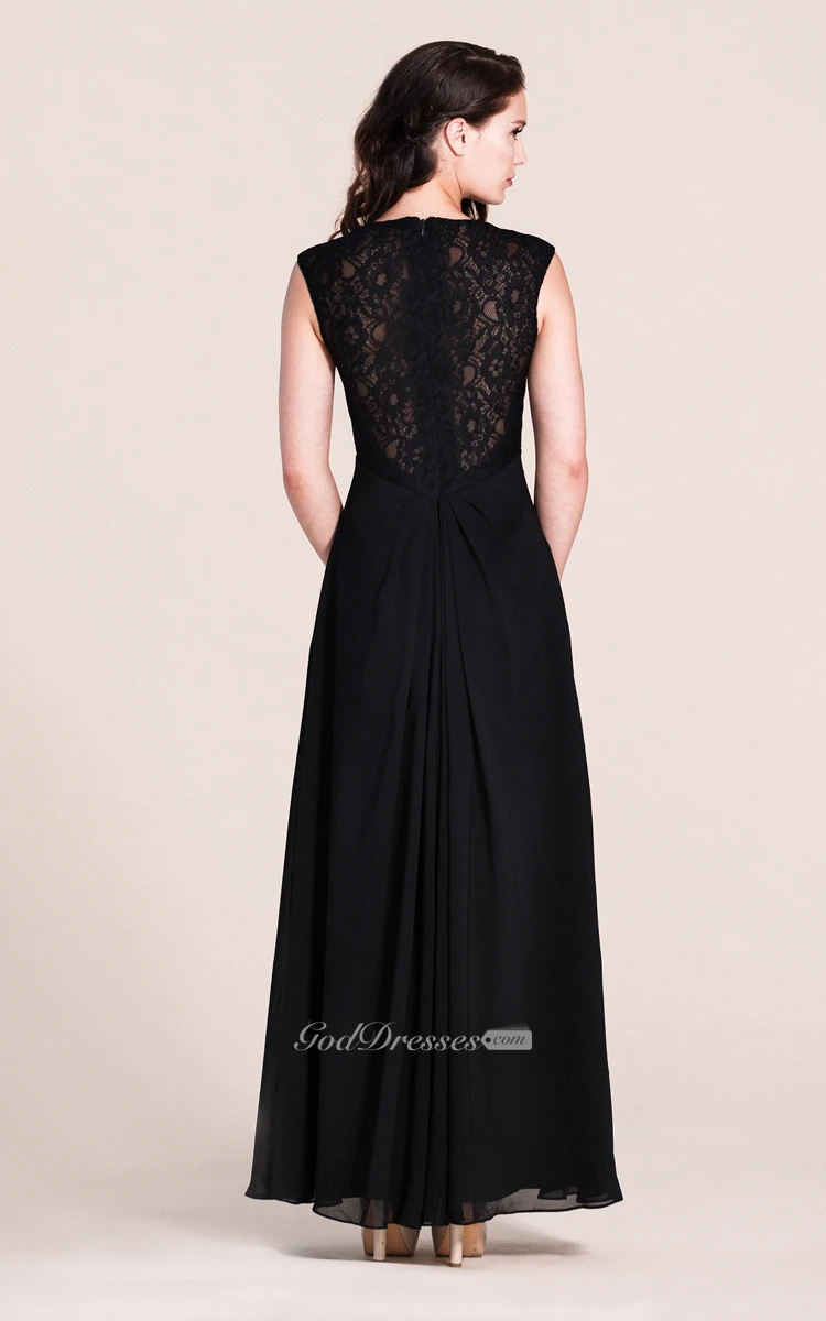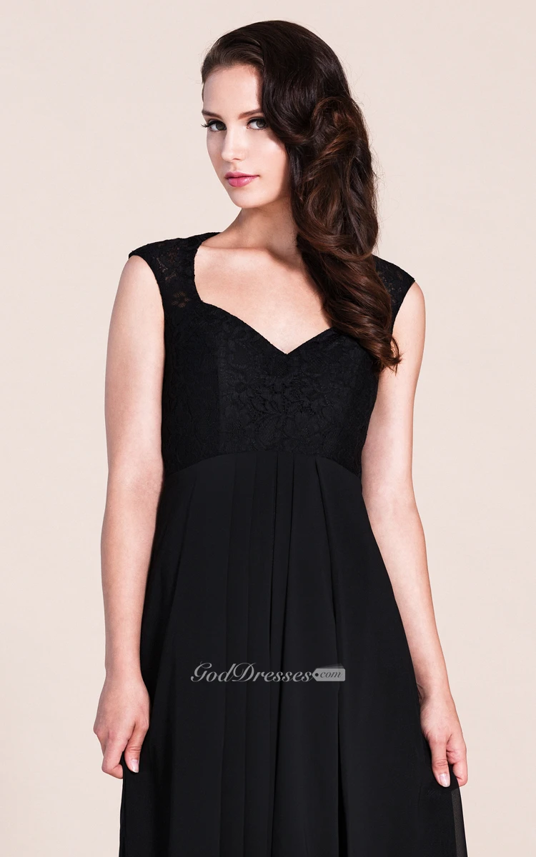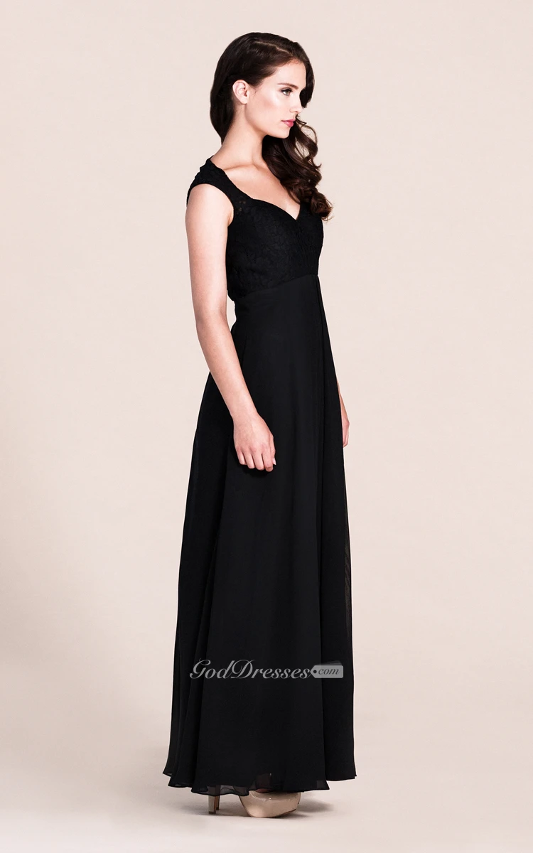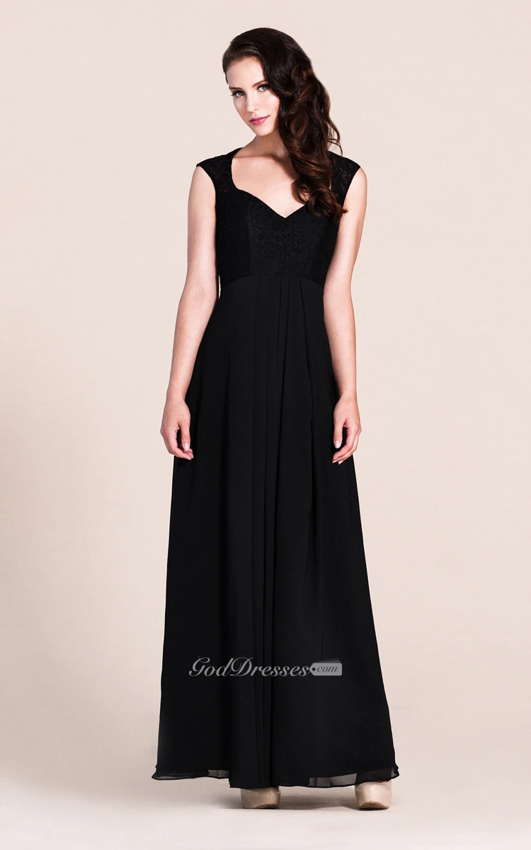 Cap-sleeved A-line Gown With Lace Bodice
