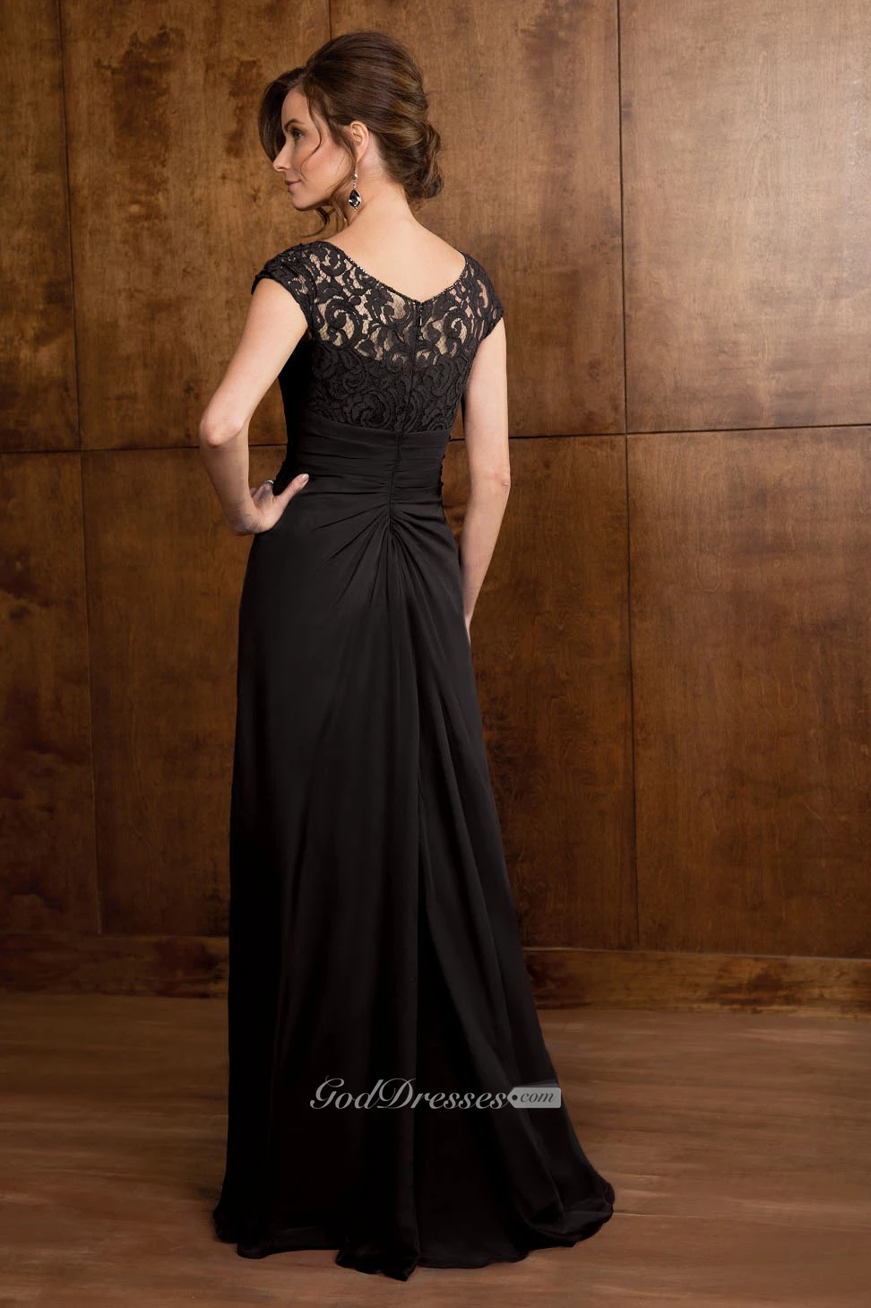 Cap-Sleeved A-Line Gown With Ruffles And Lace Bodice