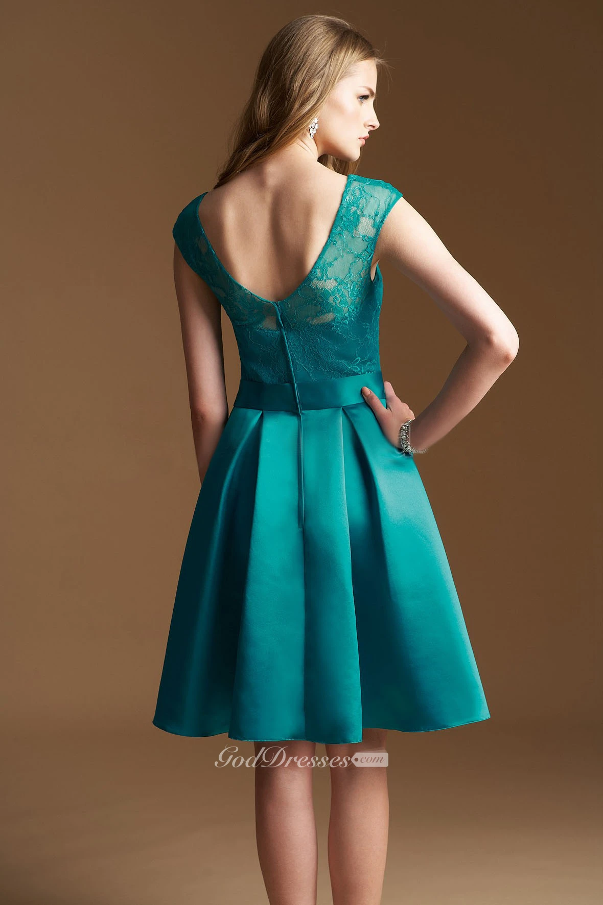 Cap-sleeved A-line Knee-length Dress with Lace Bodice and Flower