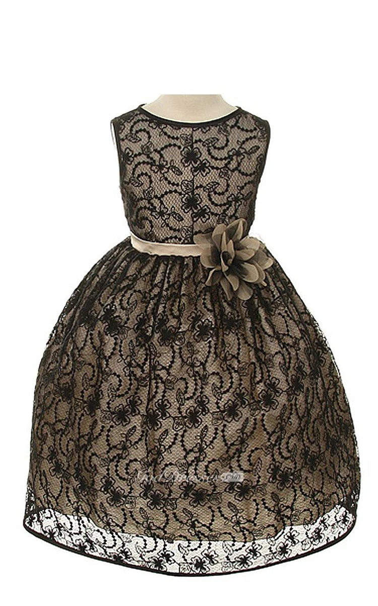 Cap-sleeved A-line Lace Dress With Flower and Pleats