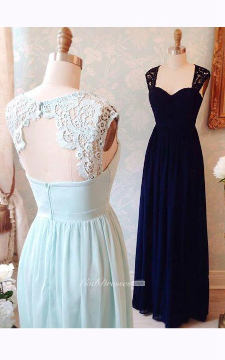 Cap-sleeved A-line Long Chiffon Dress with Keyhole Back