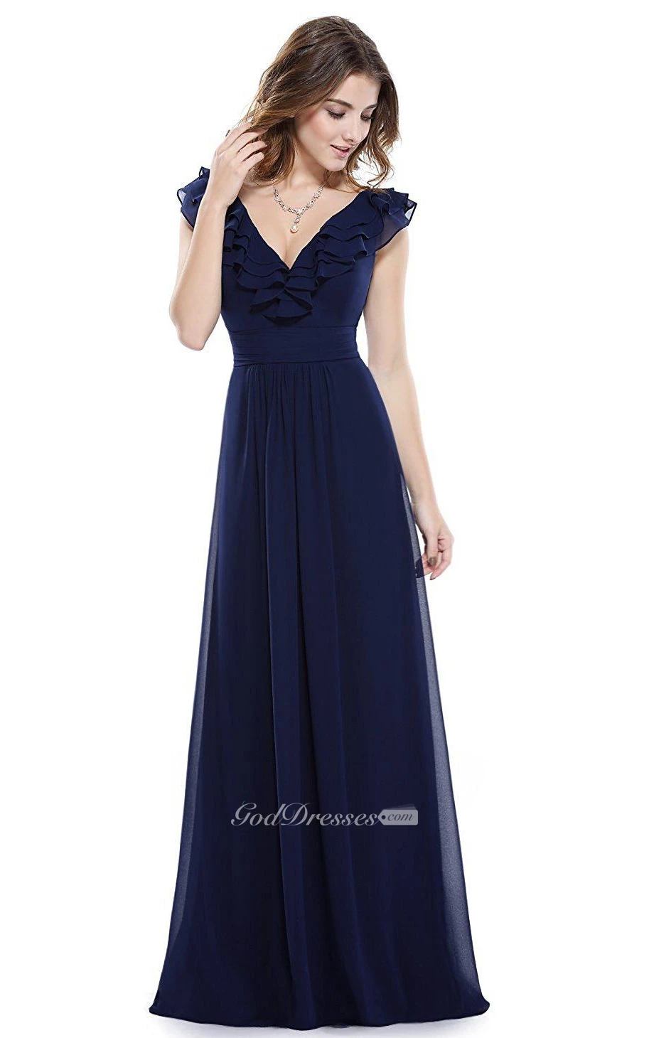 Cap-sleeved A-line Long Chiffon Dress with Ruffles