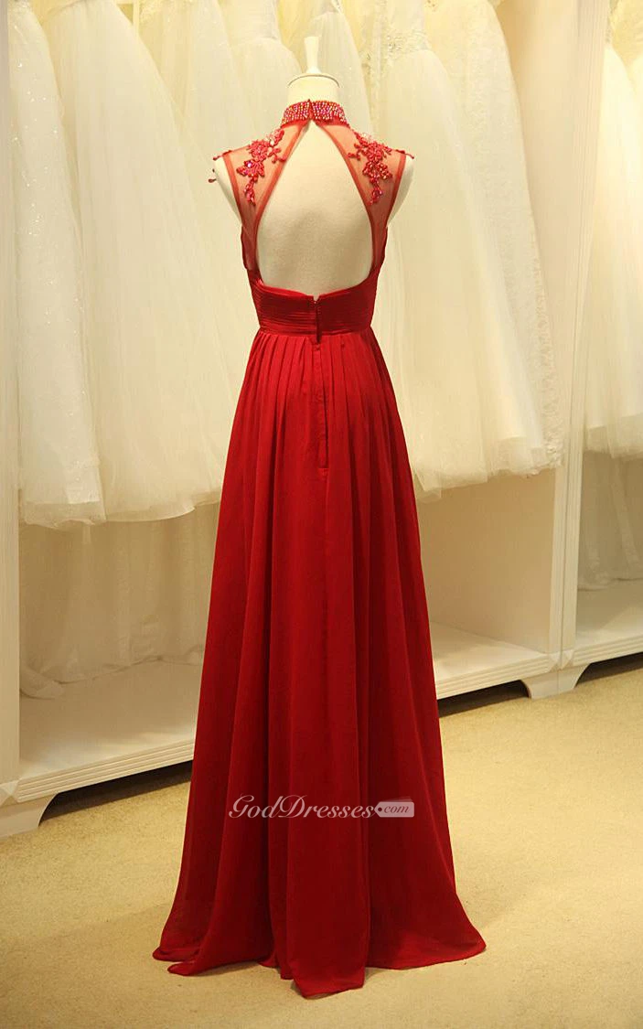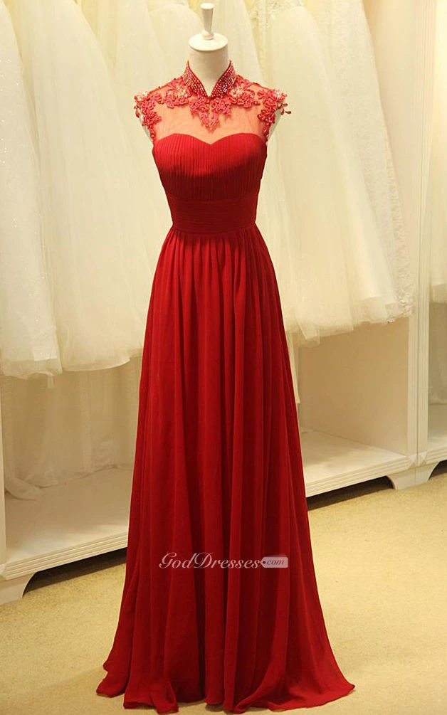 Cap-sleeved A-line Long Gown with Keyhole and Appliques