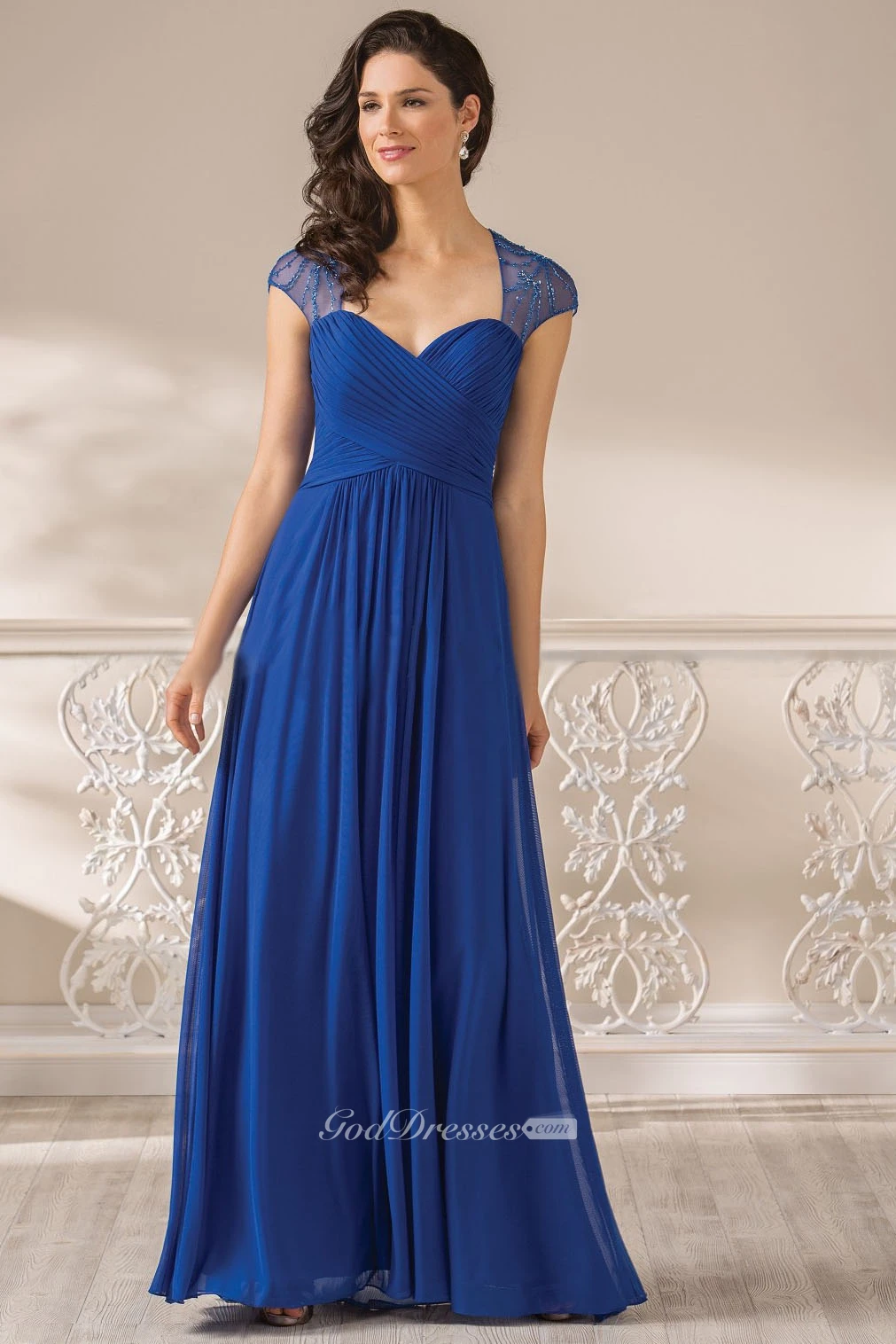 Cap-Sleeved A-Line Mother Of The Bride Dress With Illusion Beaded Back