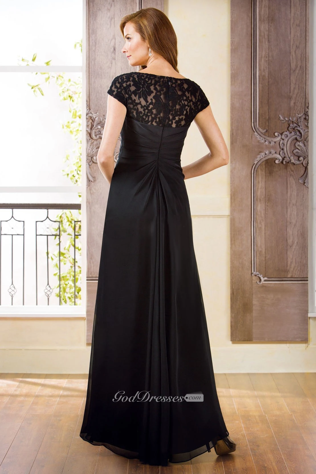 Cap-Sleeved Bateau-Neck Long Mother Of The Bride Dress With Lace Detail