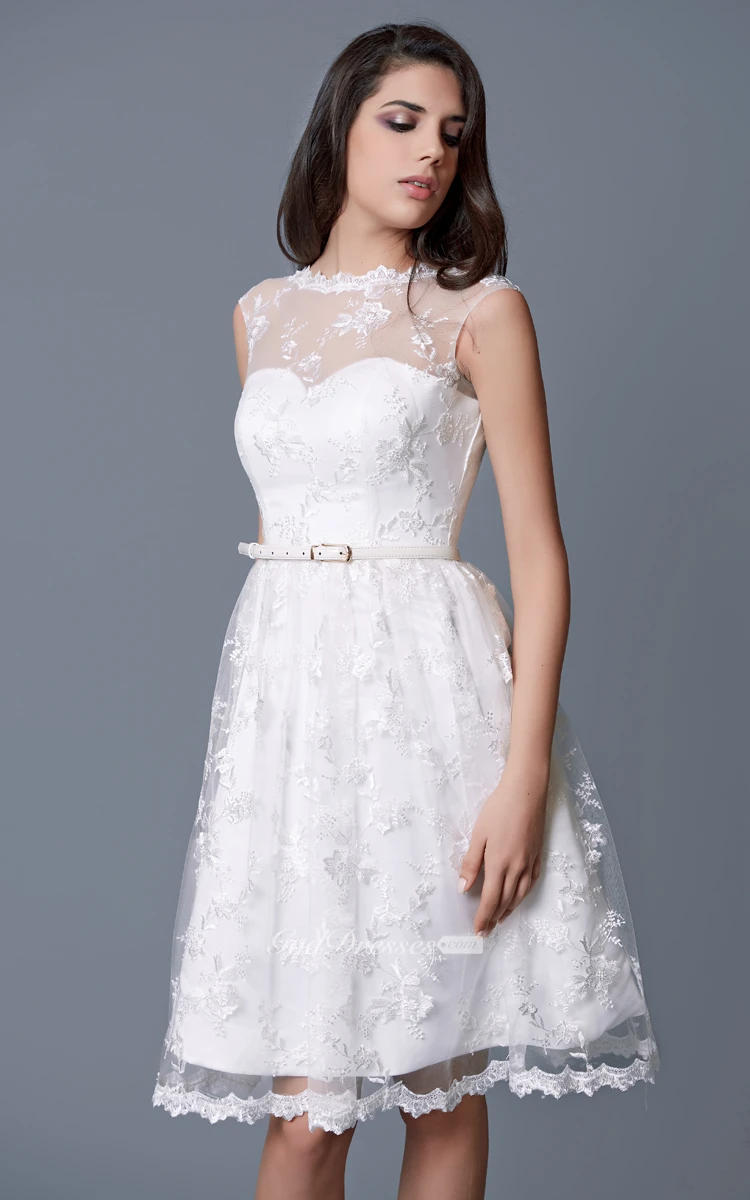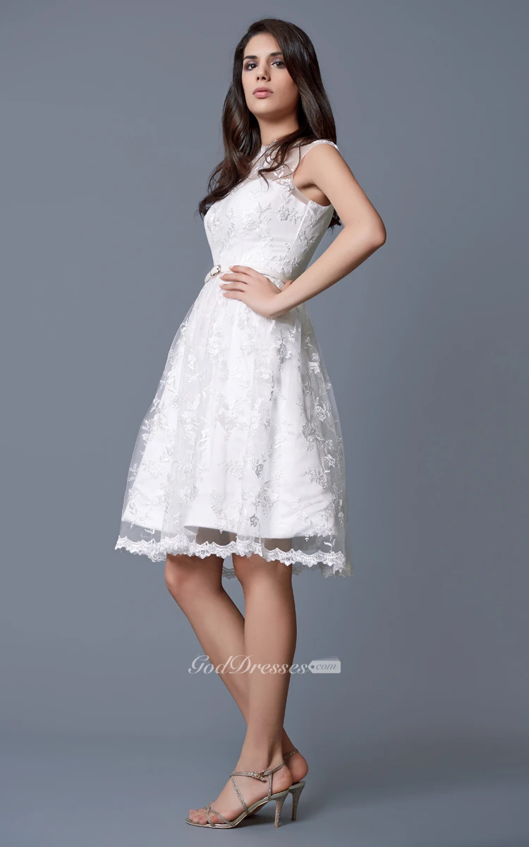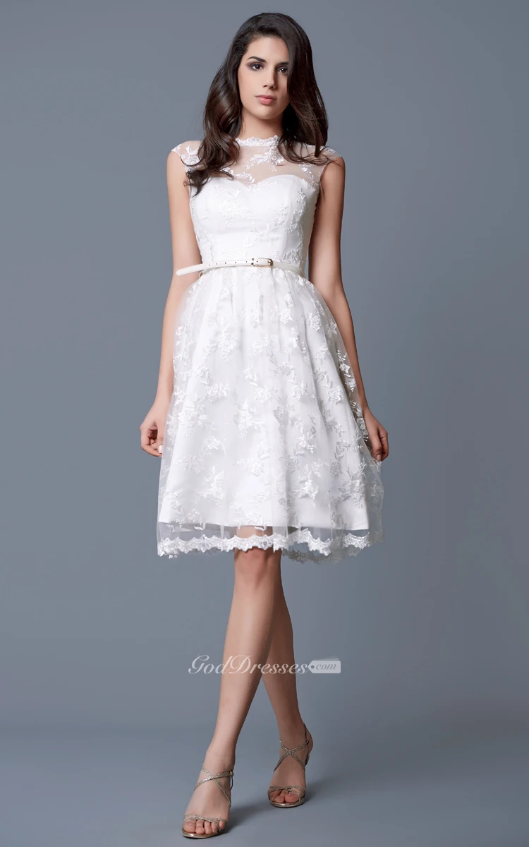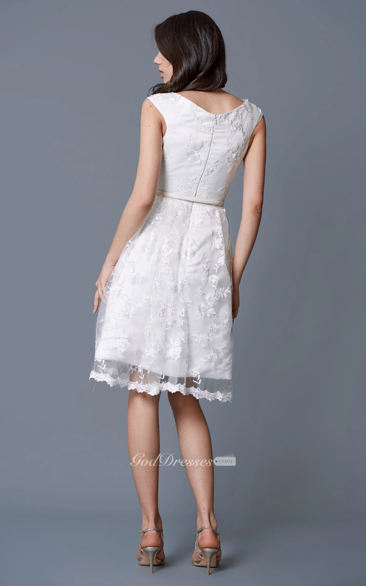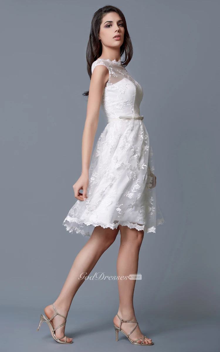 Cap-sleeved Bateau Neckline A-line Short Lace Dress