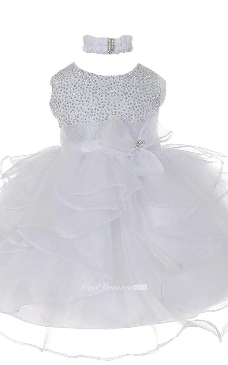 Cap-sleeved Cascading Ruffled Dress With Sequins
