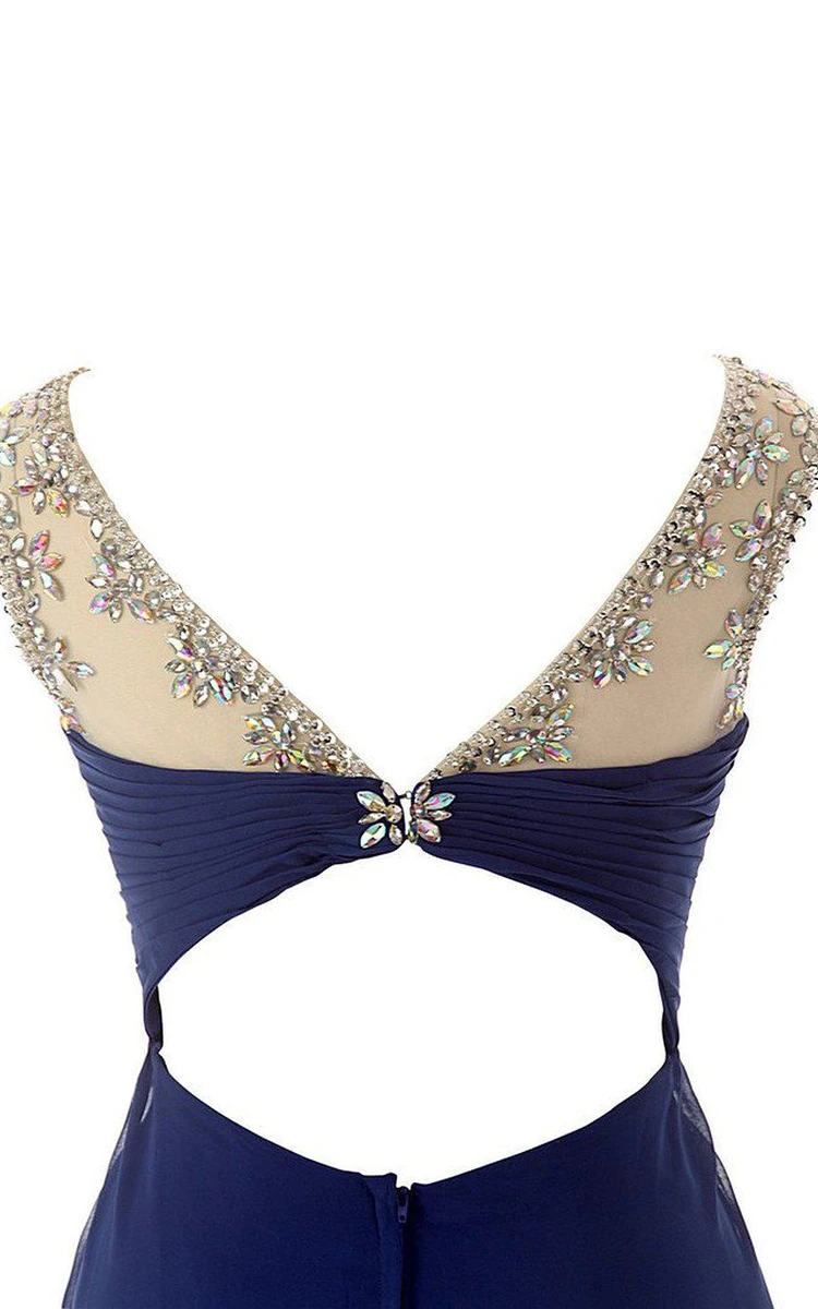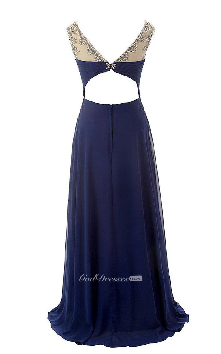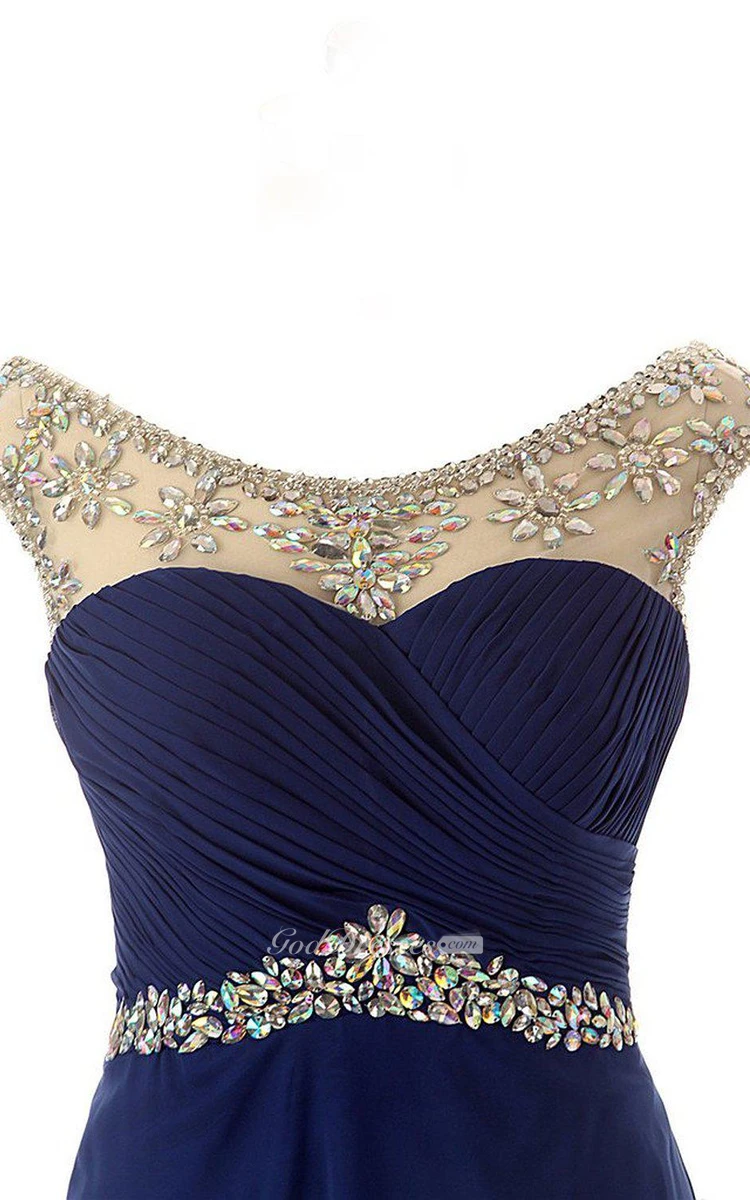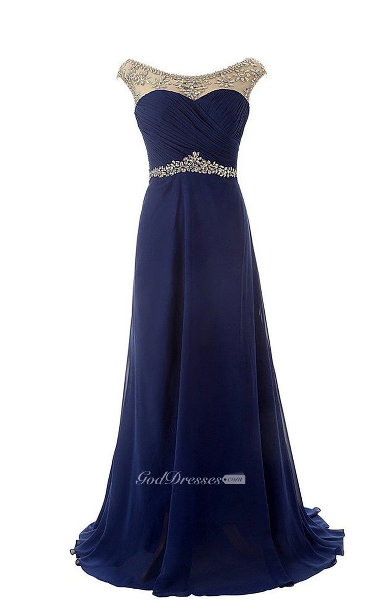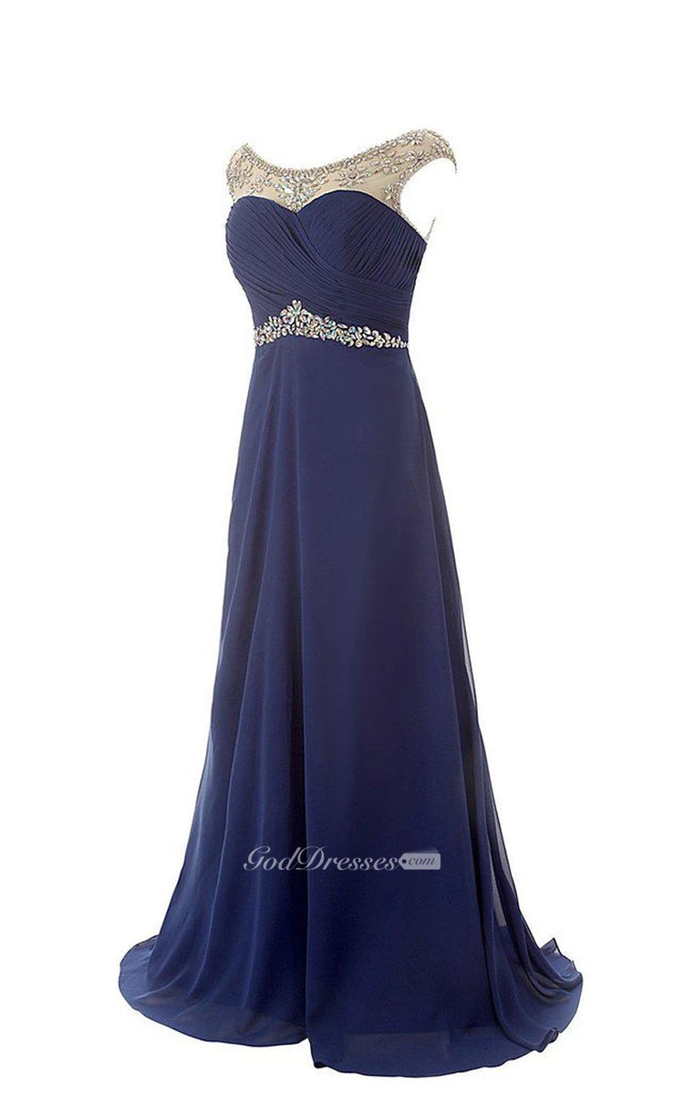 Cap-sleeved Chiffon Dress With Beaded Illusion Style
