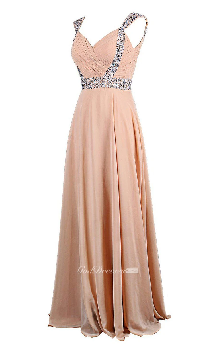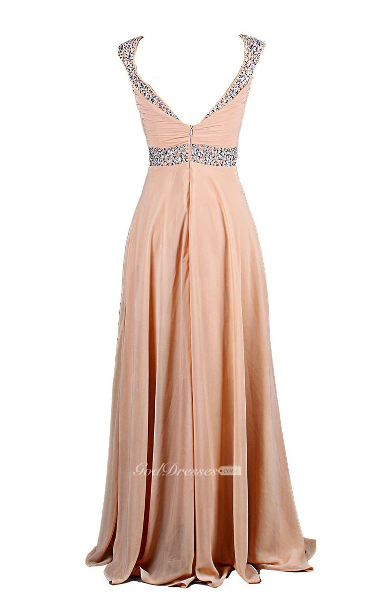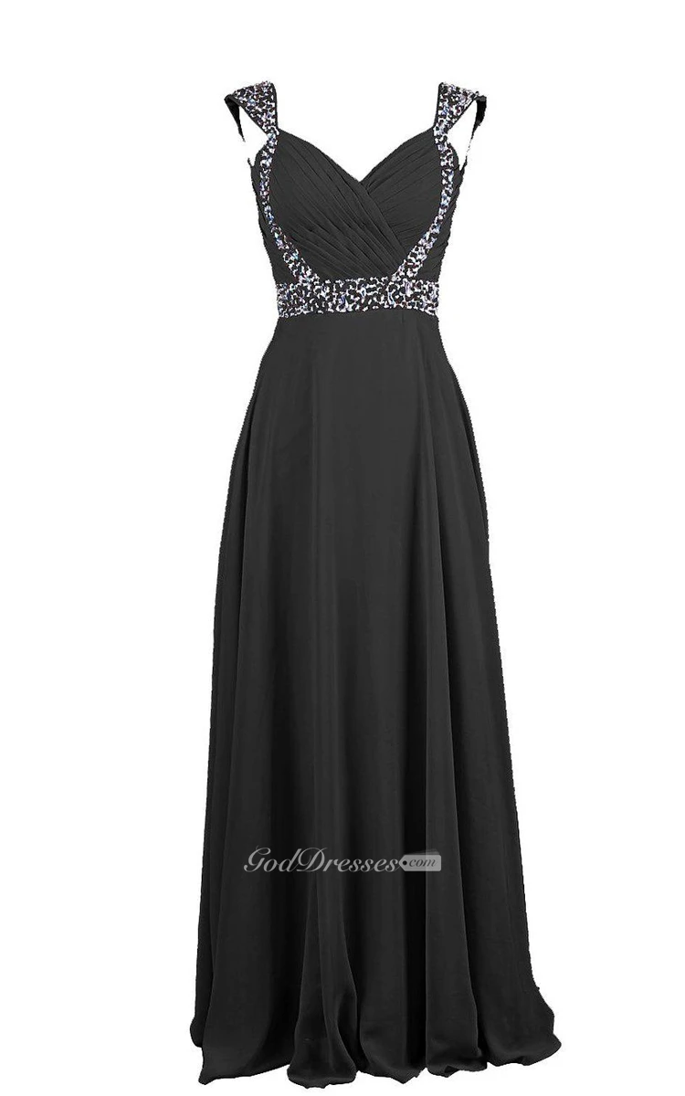 Cap-sleeved Chiffon Gown With Beaded Shoulders