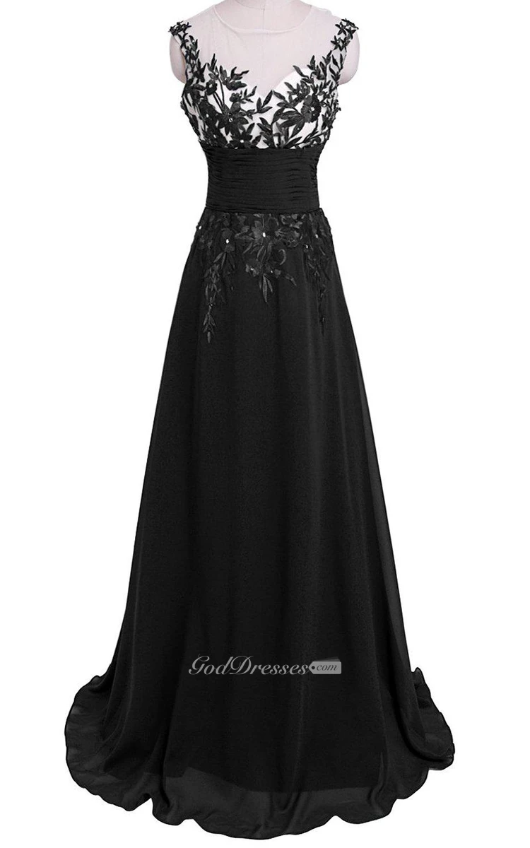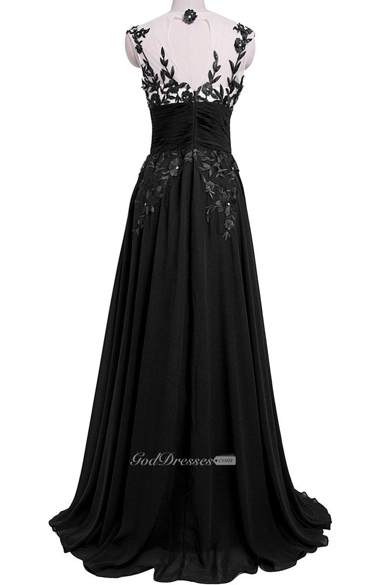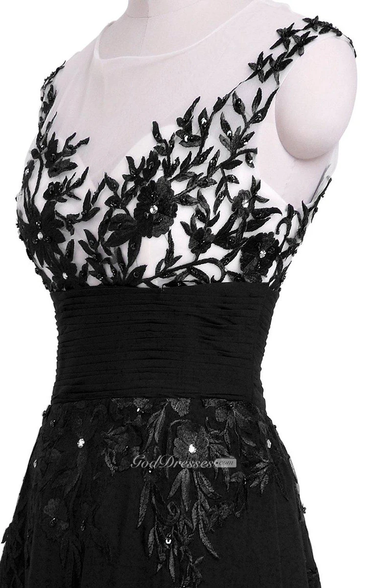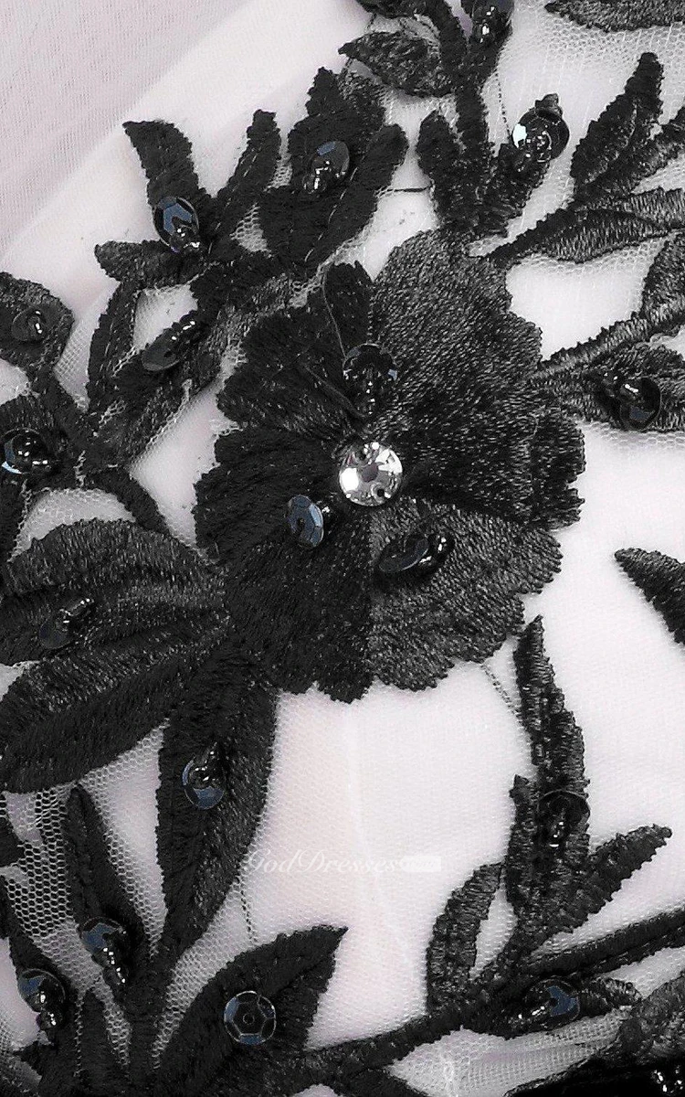 Cap-sleeved Gown With Leaf-like Appliques and Keyhole
