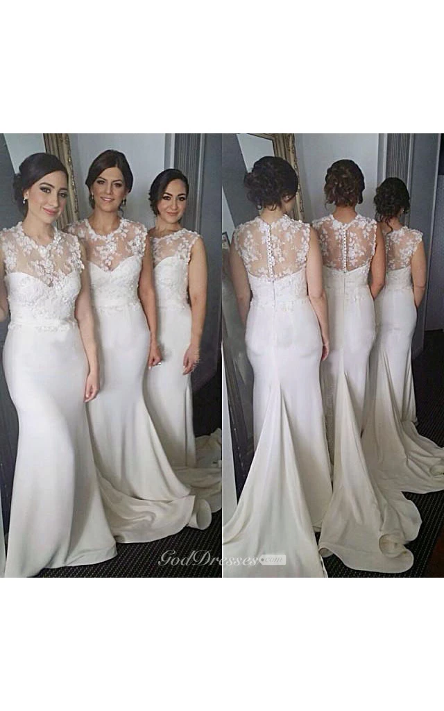 Cap-sleeved Long Chiffon Mermaid Gown with Lace Bodice