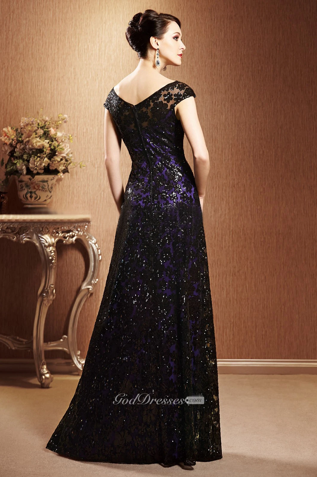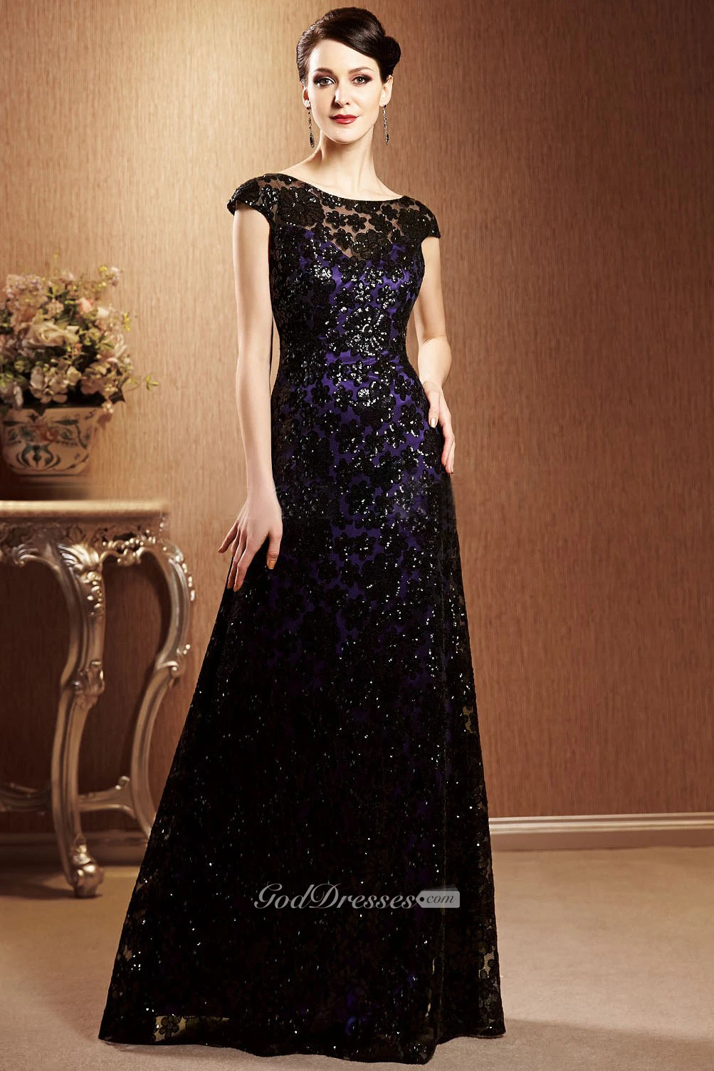 Cap-Sleeved Long Gown With Allover Sequins And V-Back
