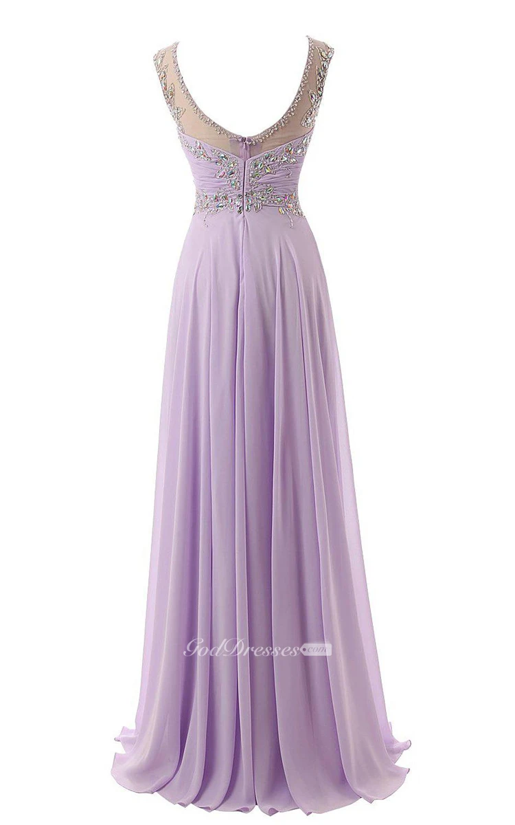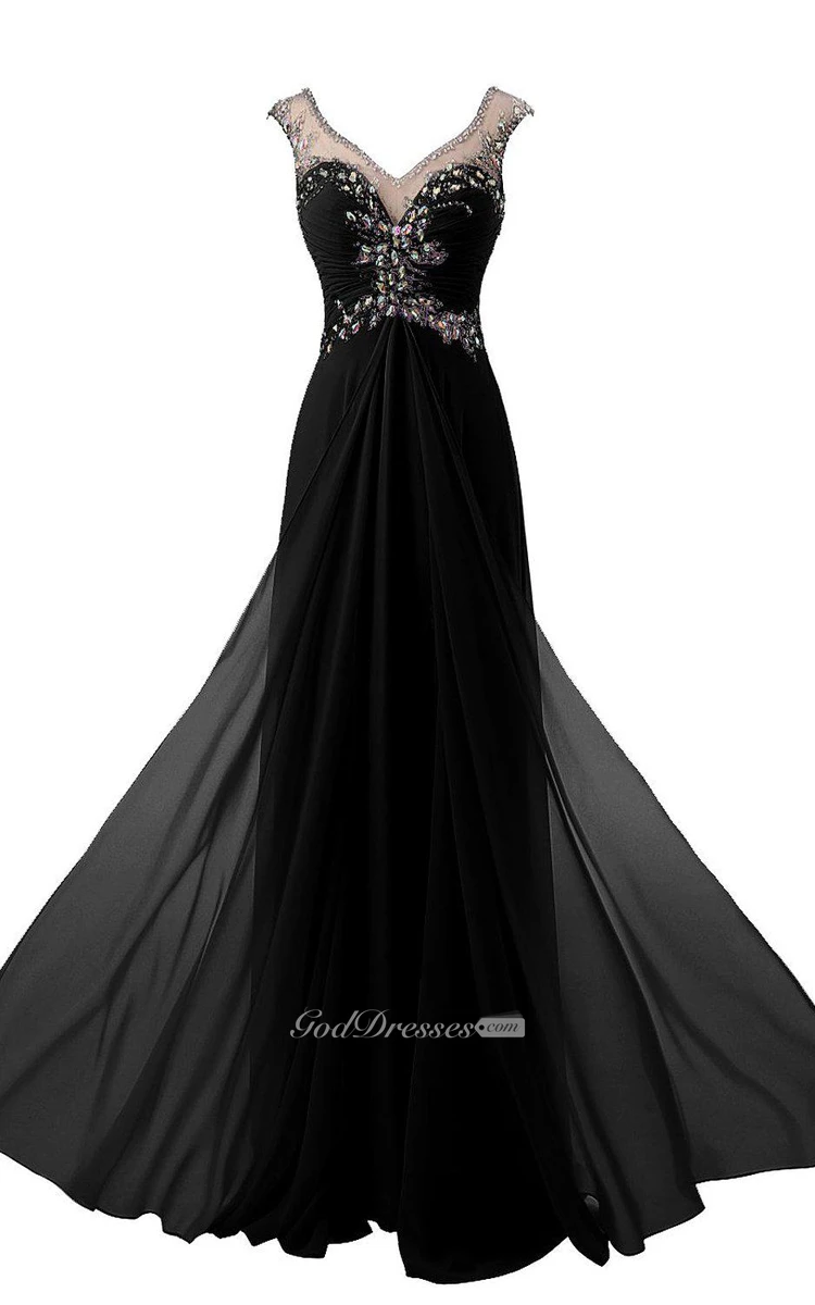 Cap-sleeved Long Gown With Beaded Illusion Style