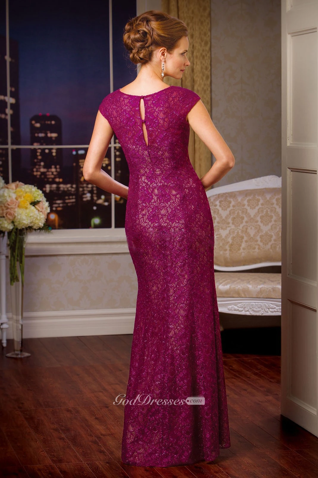 Cap-Sleeved Long Lace Mother Of The Bride Dress With Keyhole Back