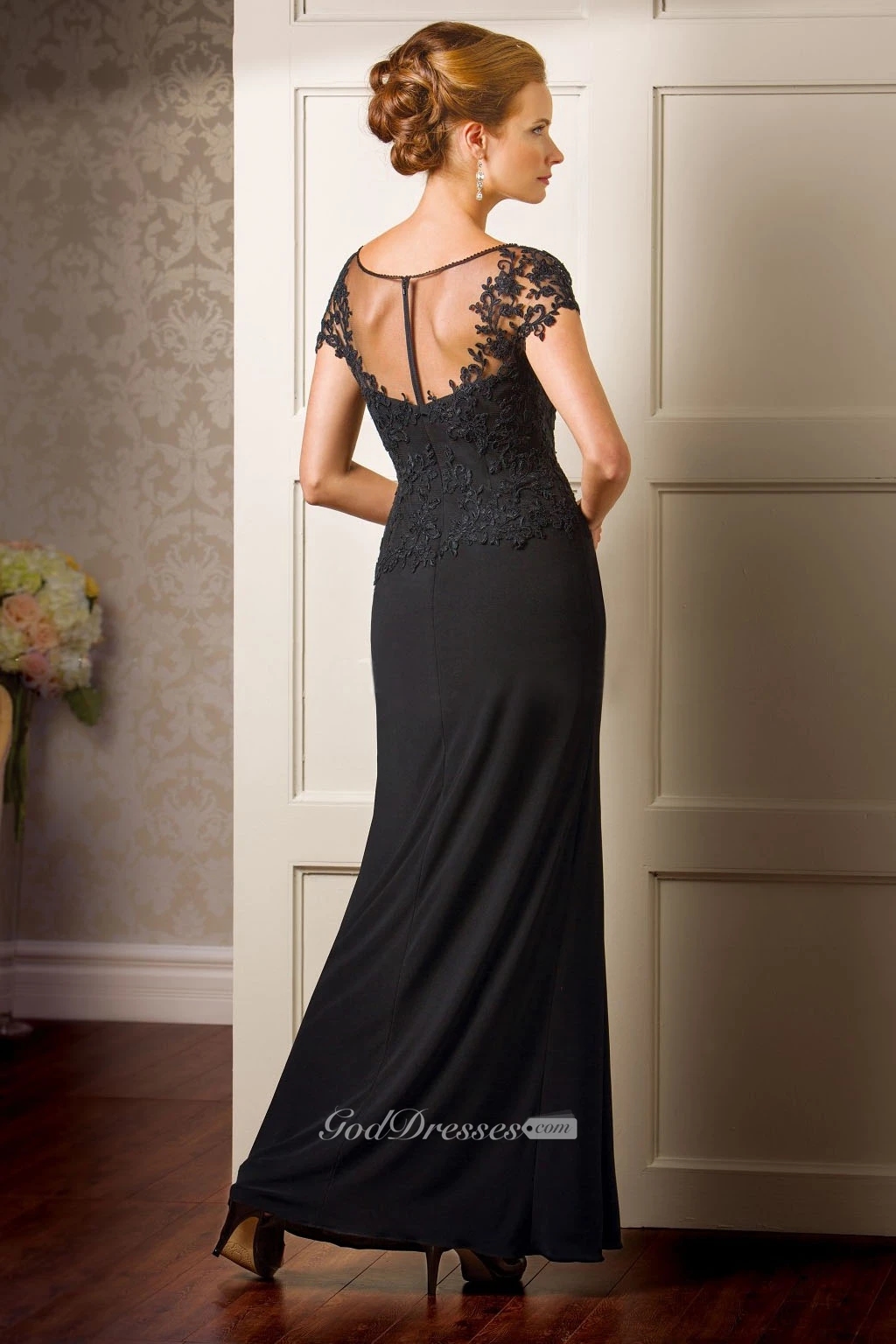 Cap-Sleeved Long Mother Of The Bride Dress With Side Slit And Appliques