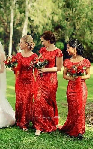 Cap-sleeved Long Sheath Dress with Scoop Neck and Sequins