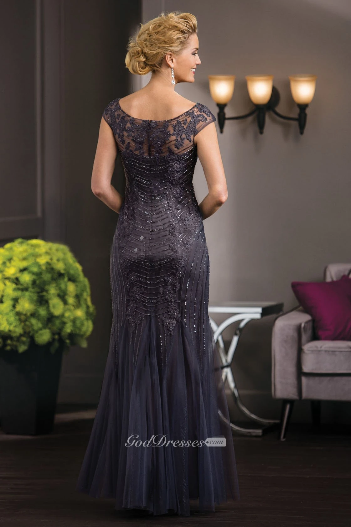 Cap-Sleeved Mermaid Mother Of The Bride Dress With Beadings And Appliques
