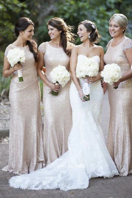 Cap-sleeved Mermaid Sequined Dress with Pleats
