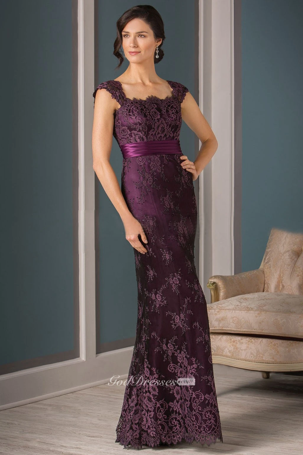 Cap-Sleeved Mother Of The Bride Dress With Appliques And Square Back