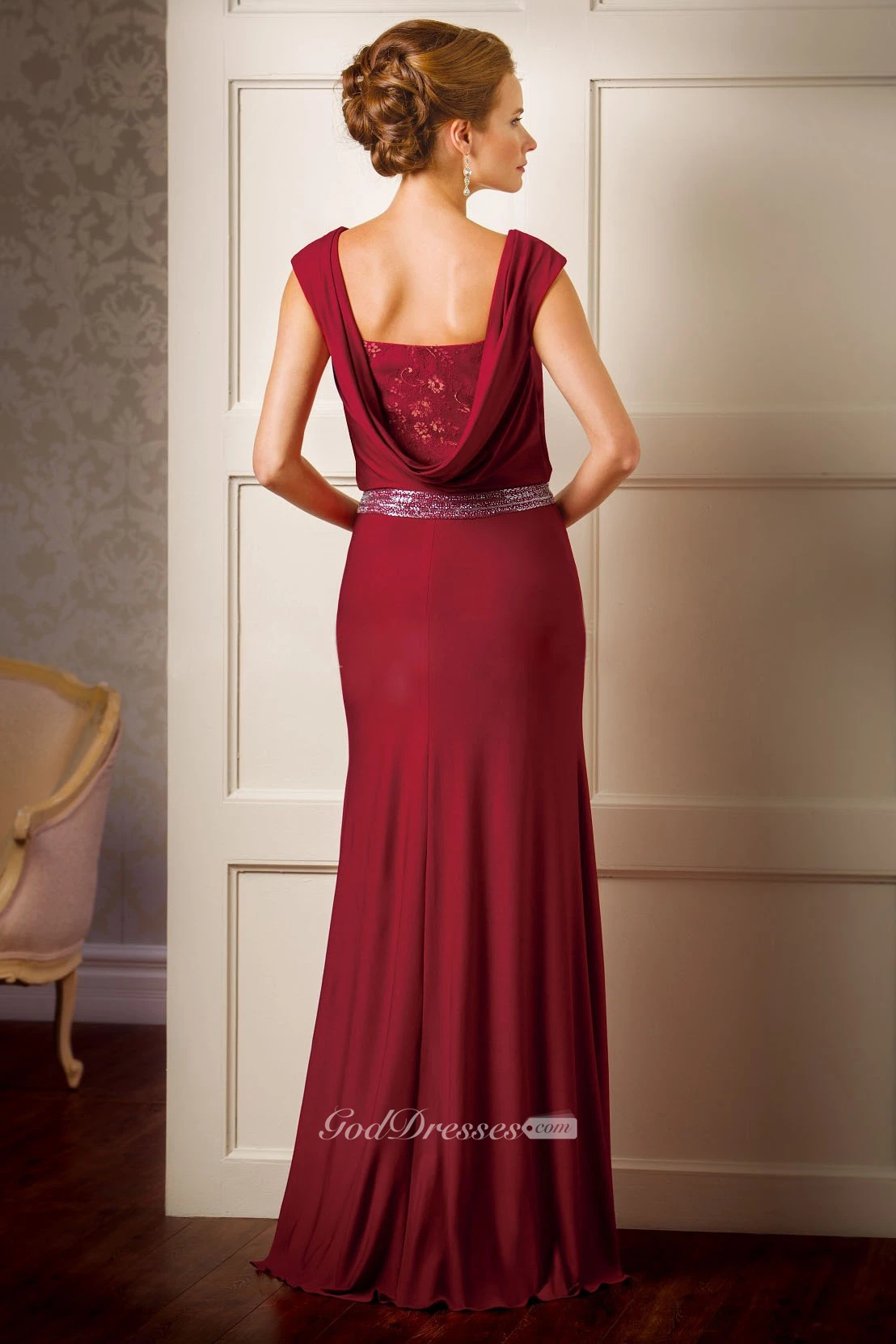 Cap-Sleeved Mother Of The Bride Dress With Sequins And Draping