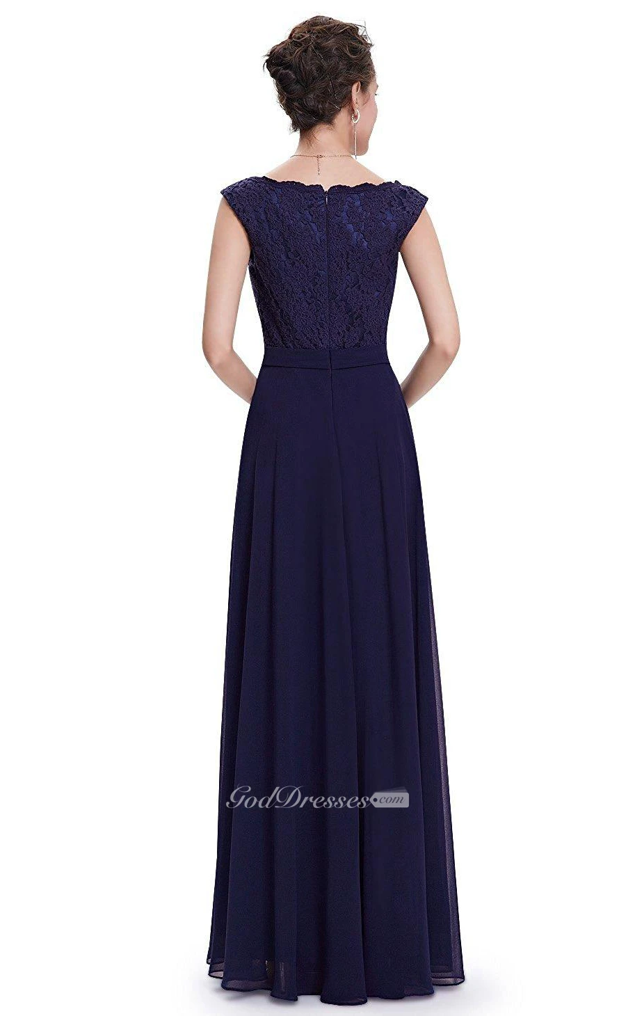 Cap-sleeved Scoop-neck A-line Long Chiffon Dress
