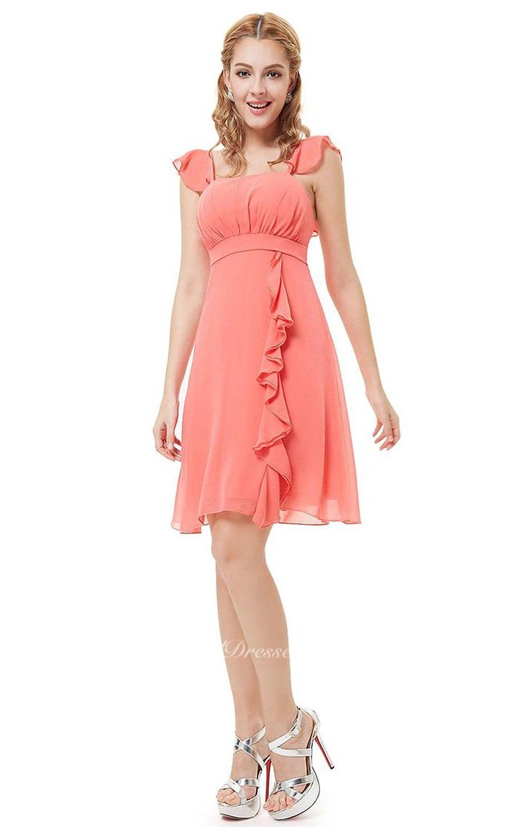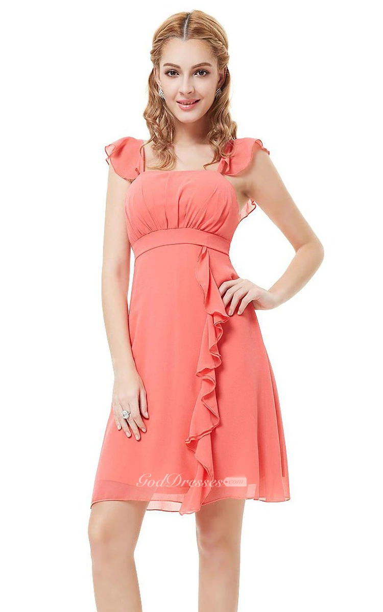 Cap-sleeved Short Chiffon Dress With Ruffles