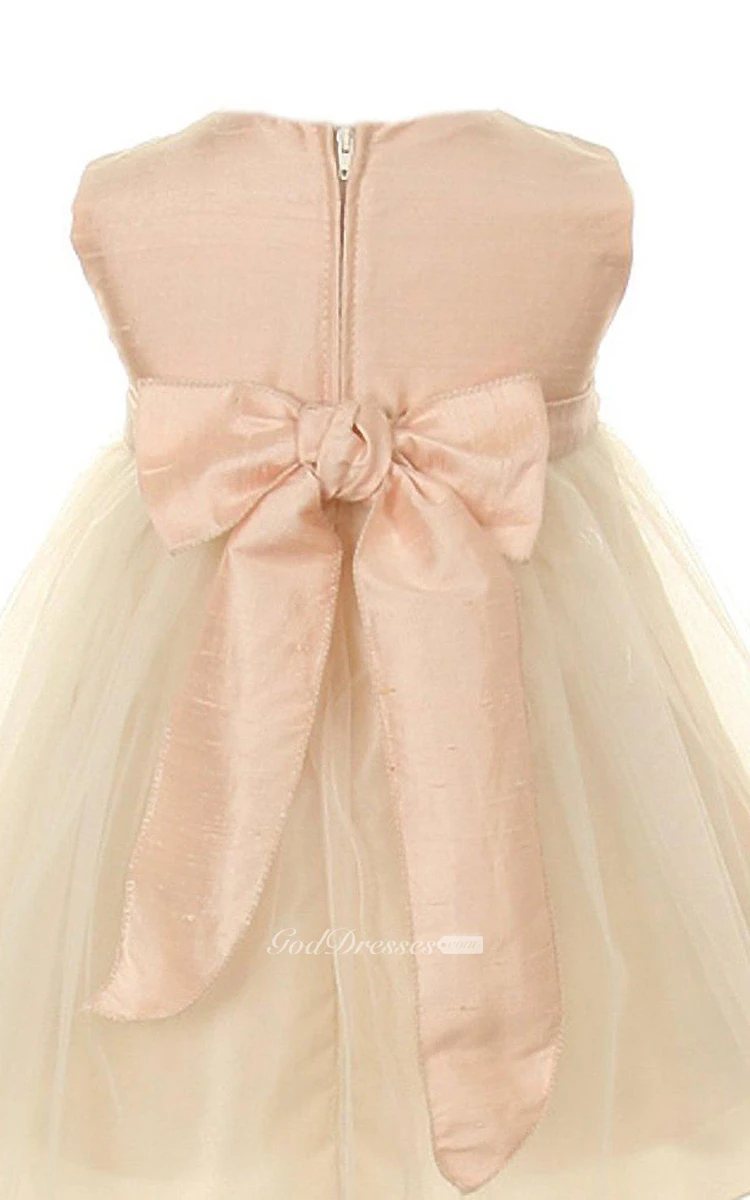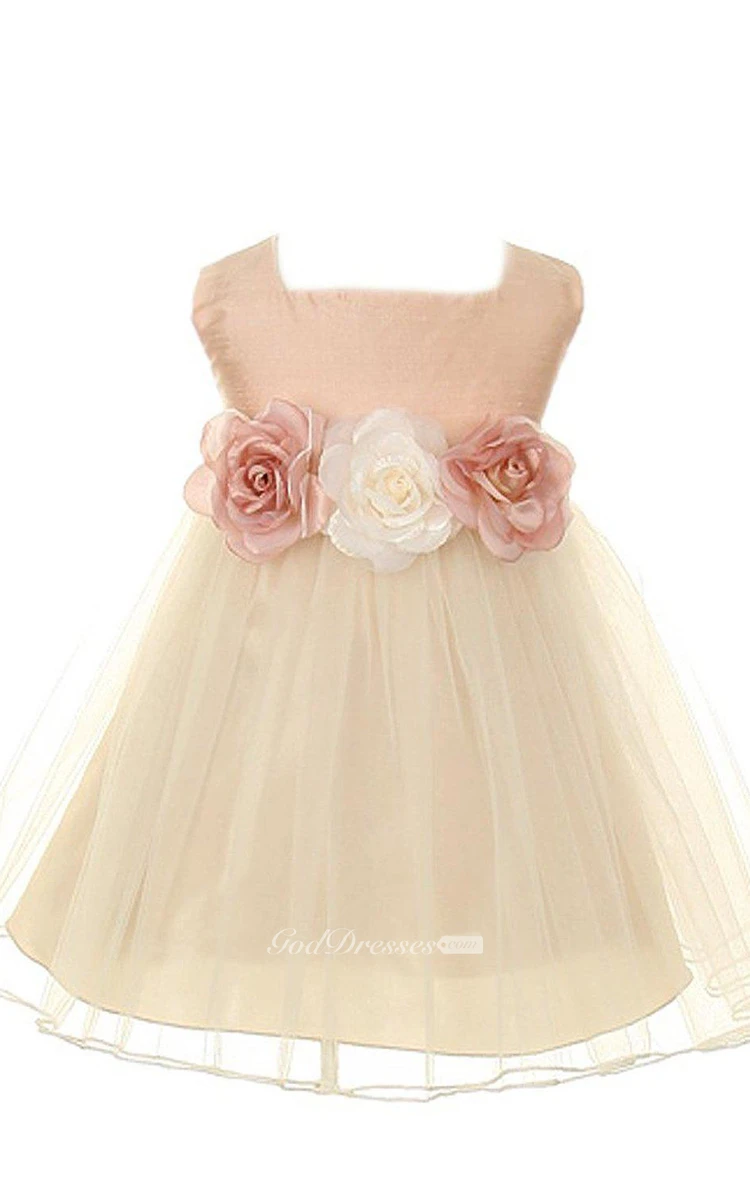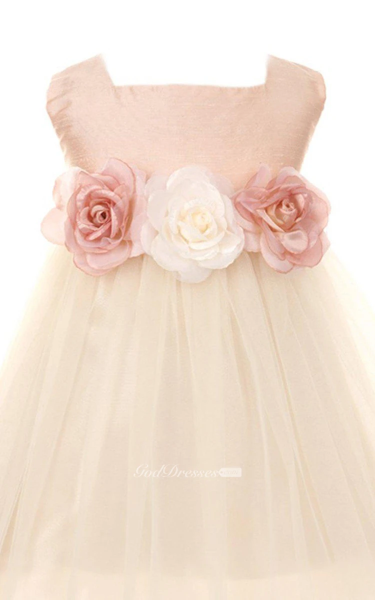Cap-sleeved Square-neck A-line Dress With Flowers and Bow