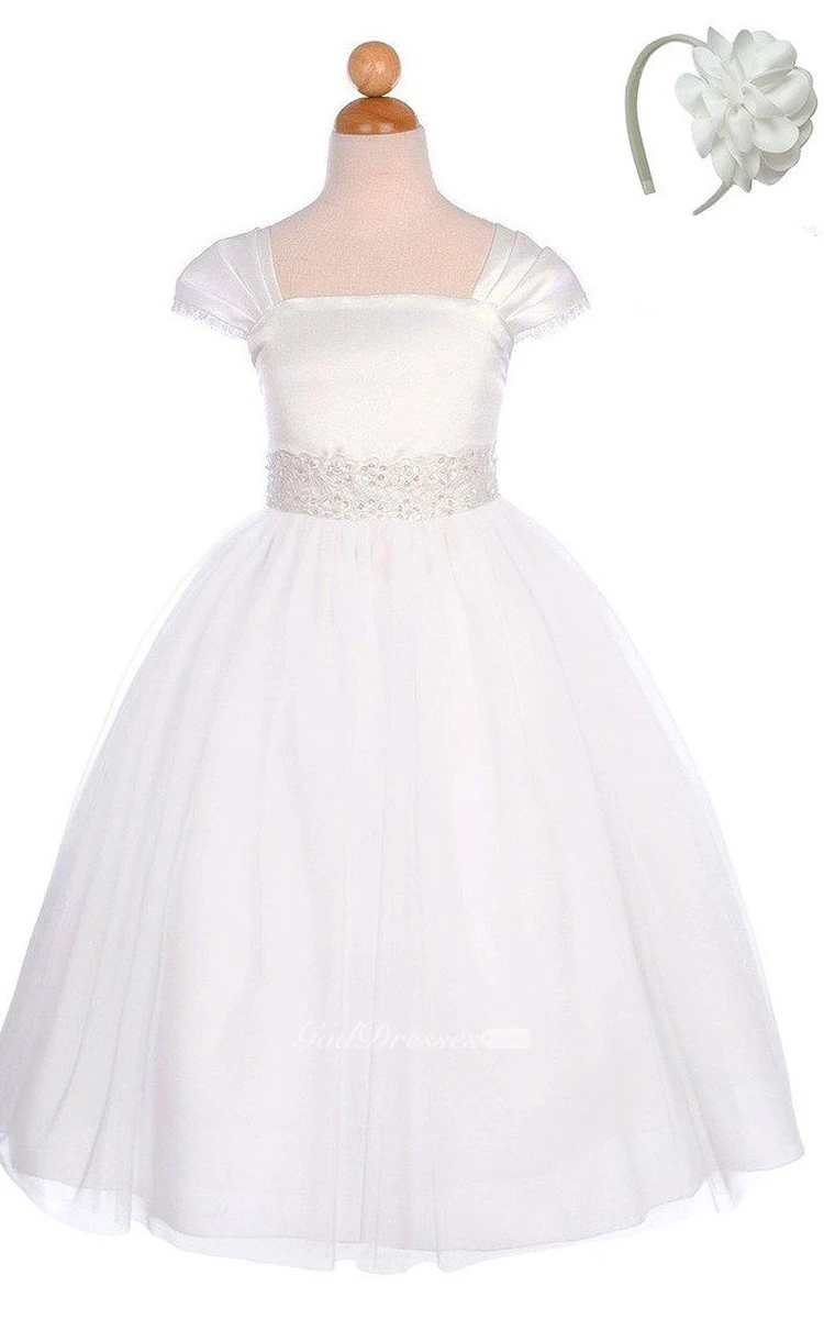 Cap-sleeved Square-neck A-line Dress With Sequins