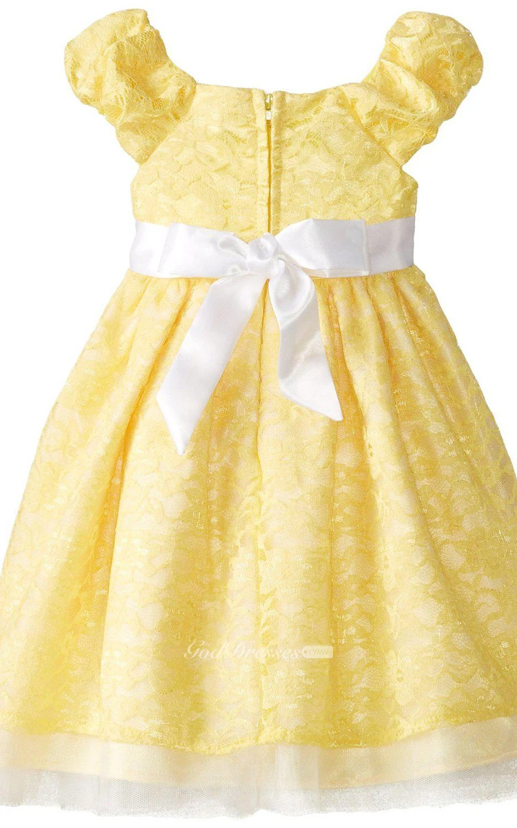 Cap-sleeved Square-neck A-line Lace Dress With Flowers