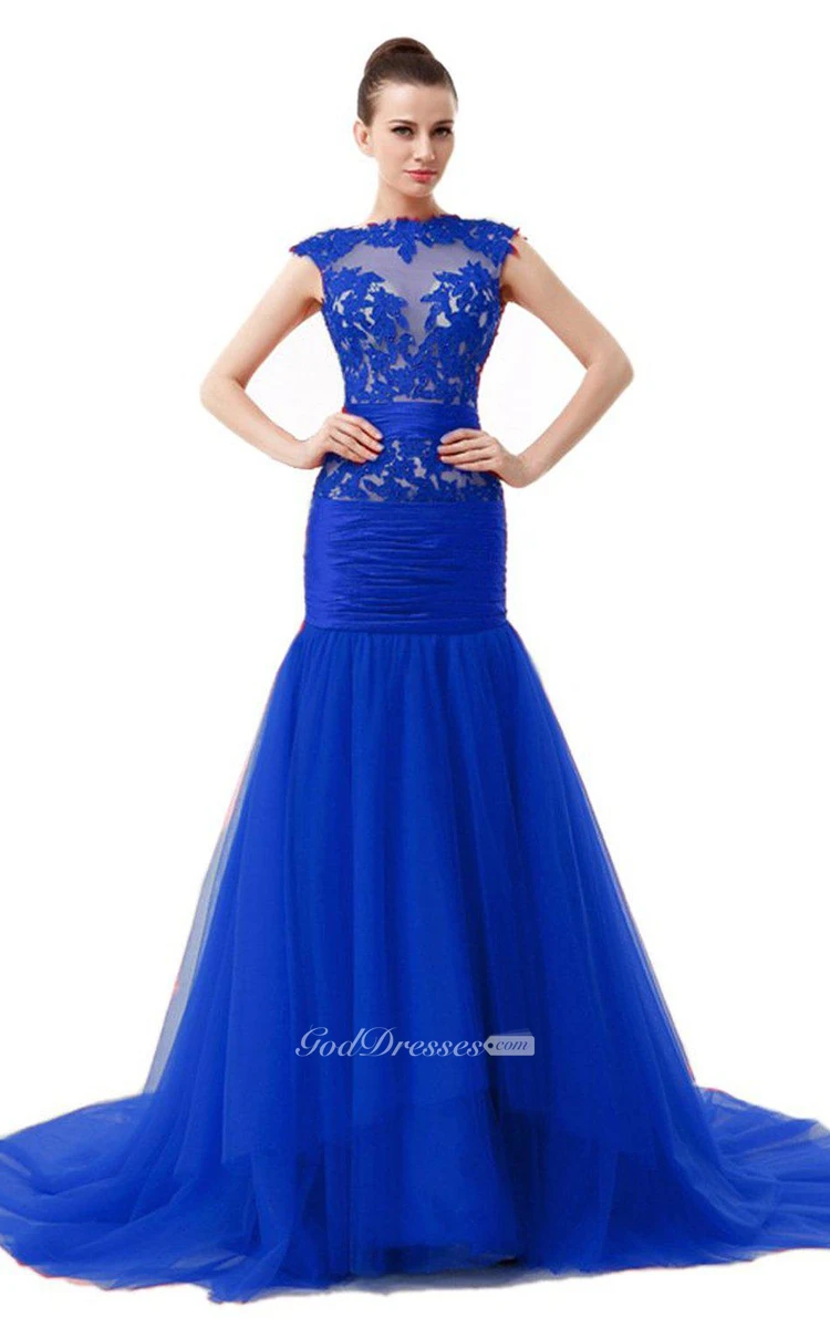 Cap-sleeved Trumpet Dress With Lace Illusion Style