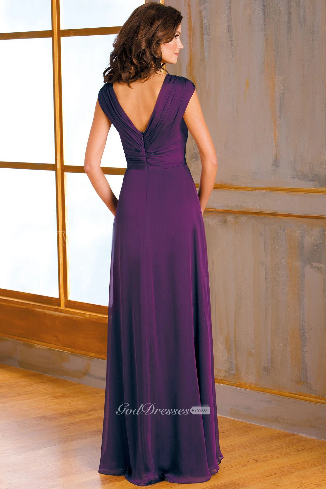 Cap-Sleeved V-Neck A-Line Mother Of The Bride Dress With Side Sequins And Ruffles