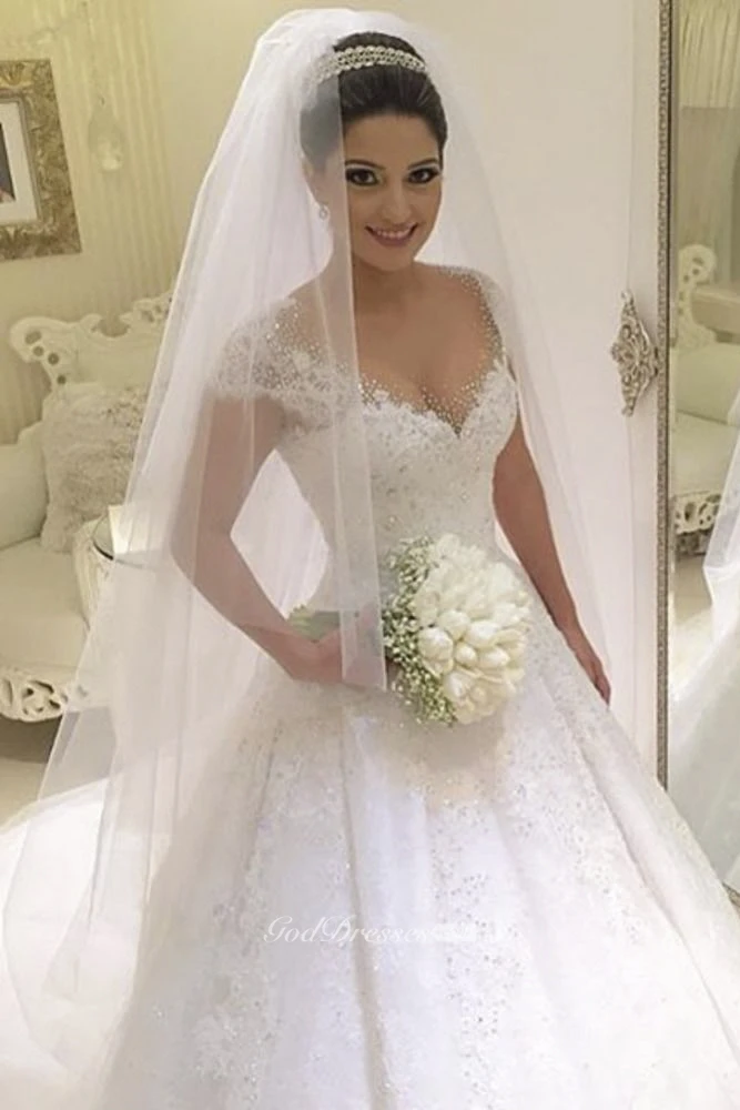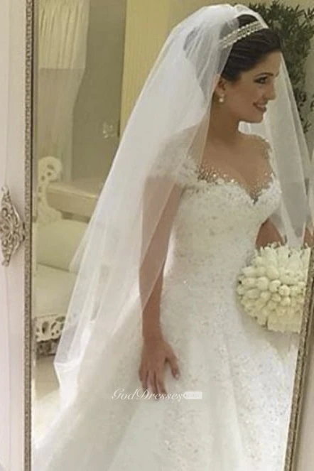 This beautiful lace ball gown is amazing and exactly what I saw myself wearing on my wedding day! After searching for what seemed like an eternity in local bridal salons and never finding anything that even registered as (the one), I knew immediately after seeing this dress that I was buying it. Wedding dress shopping was miserable for me since I'm a plus-size bride. Simple and plus-size just doesn't seem to mix in the average bridal salon and I was looking for simple, but elegant. This dress is that and more! It's beautifully and expertly made. The delicate lace mixed with the detailed beading and accents was better than any details I saw on bridal salon dress. If this isn't the dress for you, I know one of the others from the shop is. Take a chance with this shop; they are absolutely worth it!