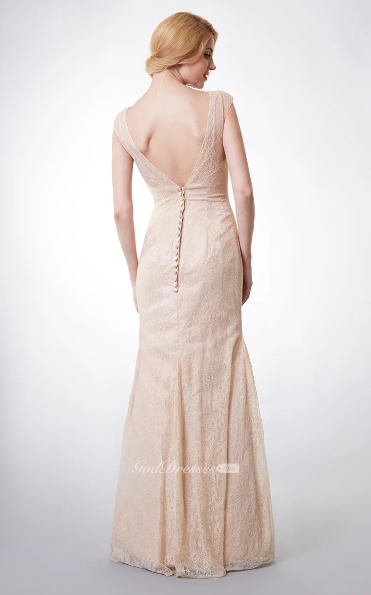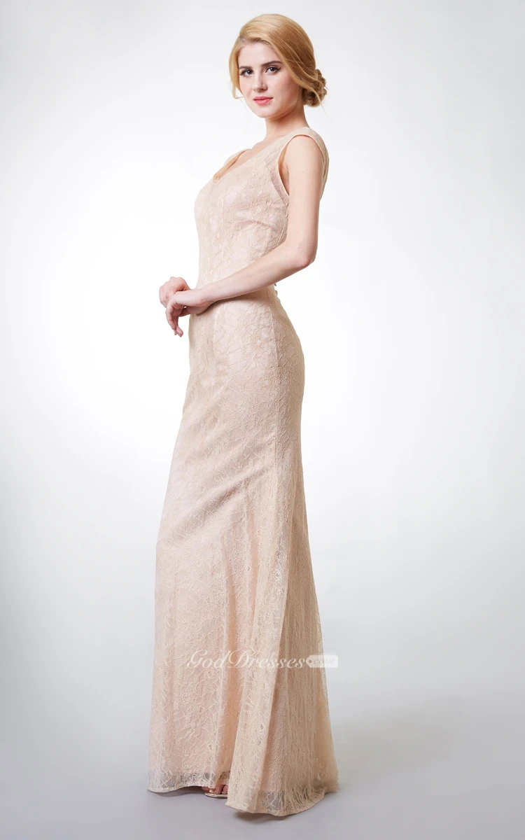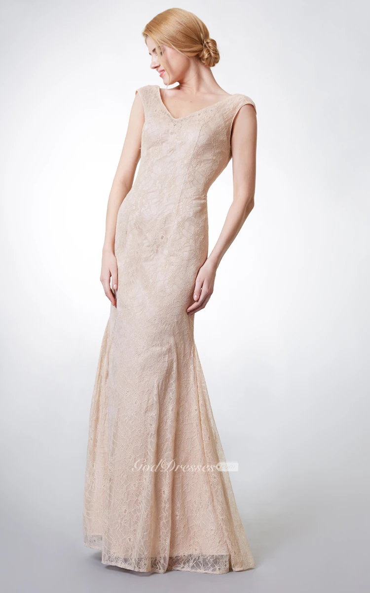 Purchased this long lace gown for my sister who was a bridesmaid at her friend's wedding. Selected her size from the size charts. When she tried it on, we found that it fit like a glove. Lace material is soft and rich and does not make the dress cheap at all. Cut is flattering. My sister is tall and the dress suits better than any other. Everybody liked her dress and asked where we got it.