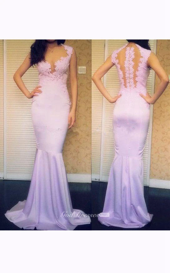 Cap-sleeved V-neck Mermaid Chiffon Dress with Lace