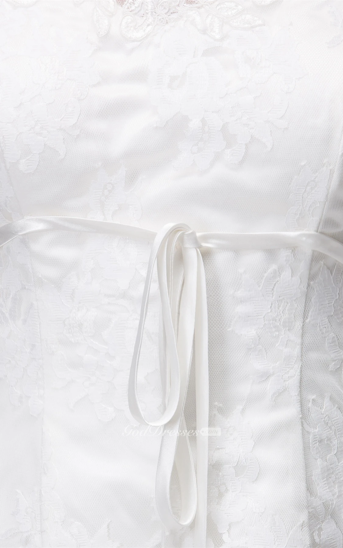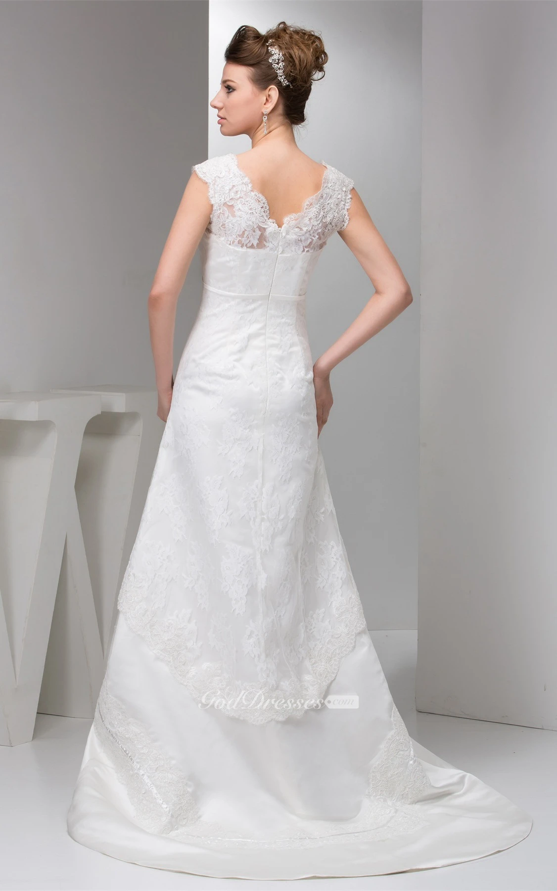 Caped-Sleeve A-Line Lace Gown With Low-V Back