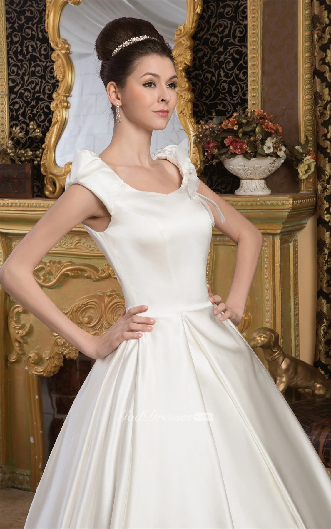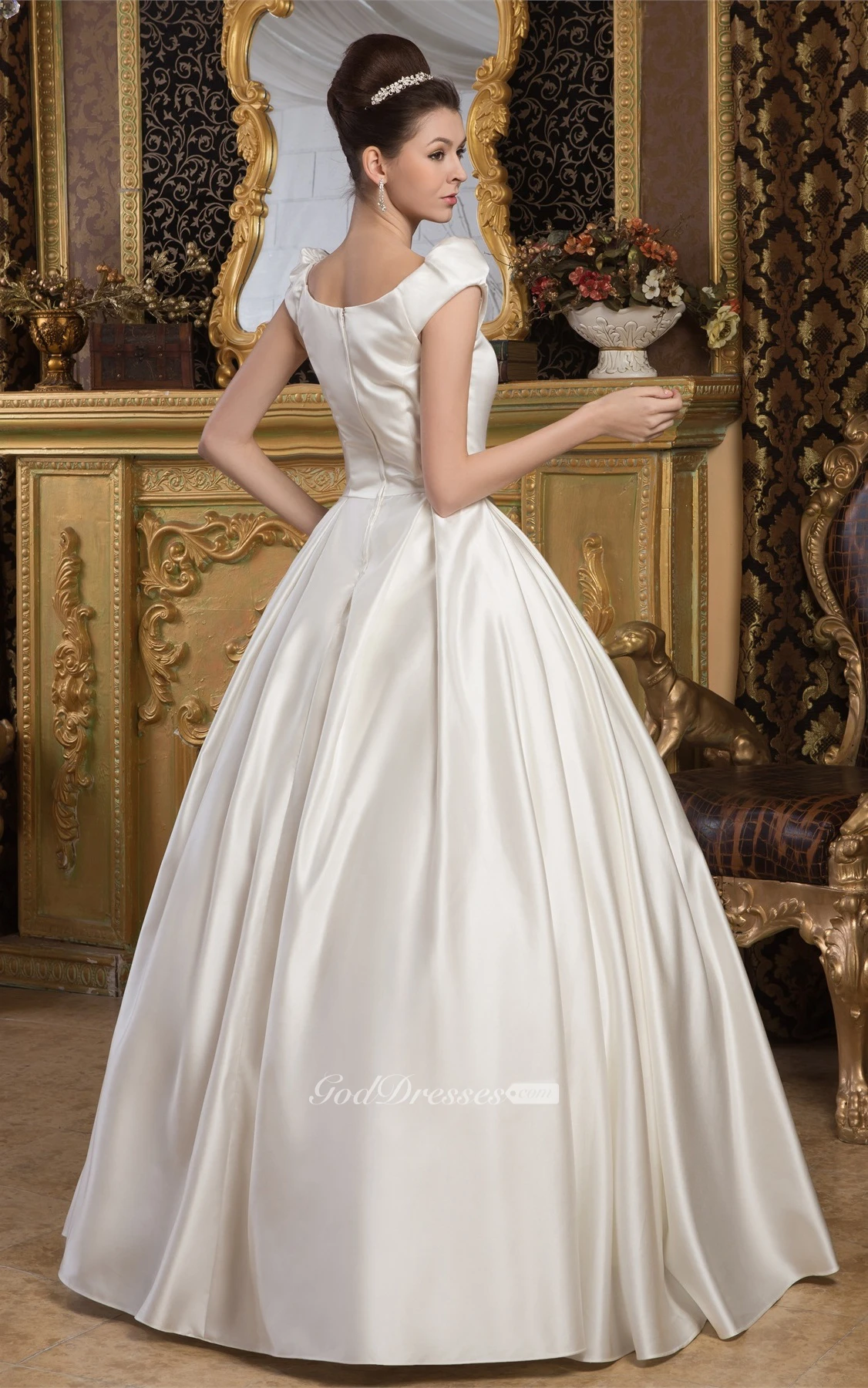 Caped-Sleeve A-Line Satin Ball-Gown With Epaulet
