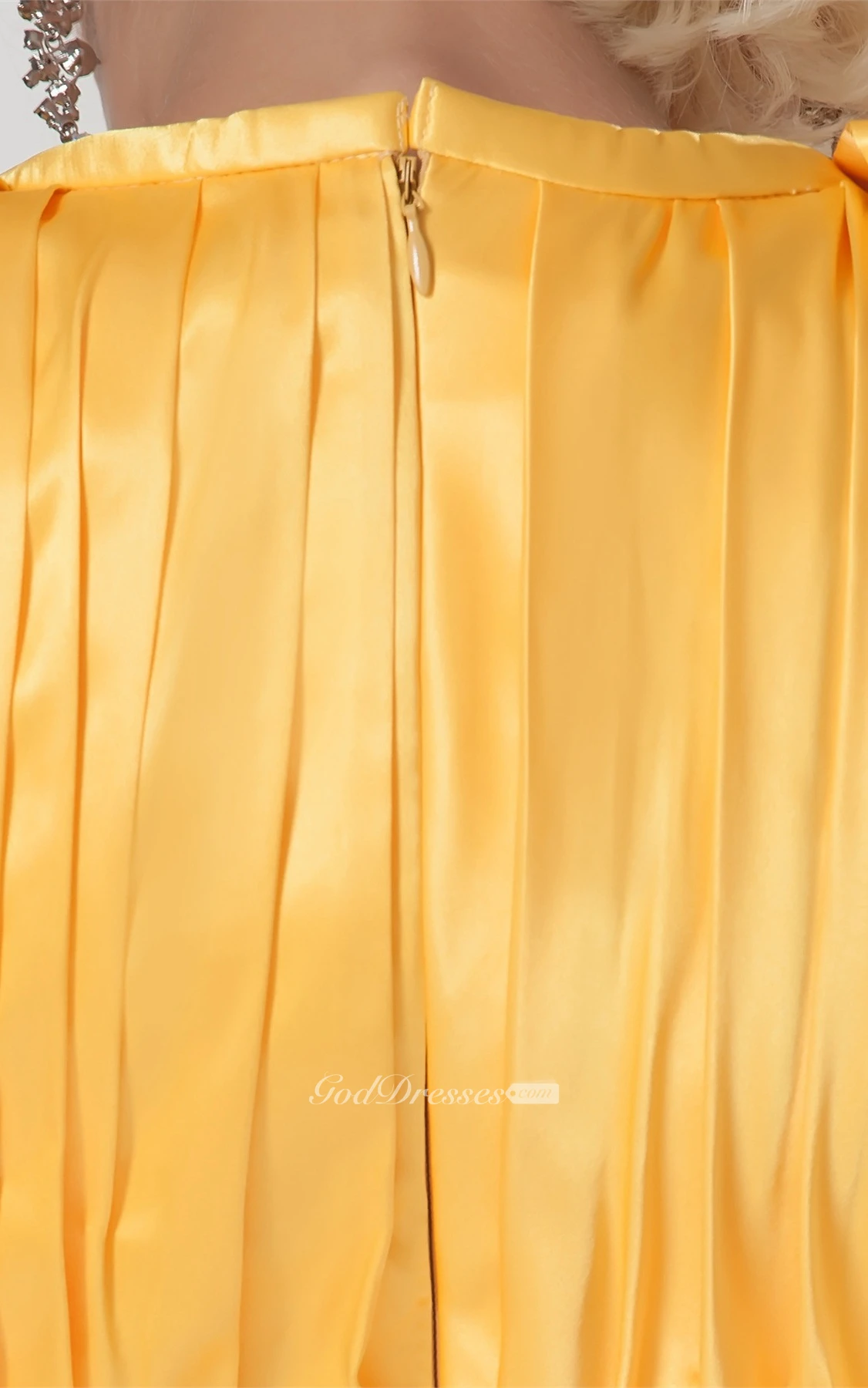 Caped-Sleeve Ankle-Length Ruched Dress With Gemmed Waist