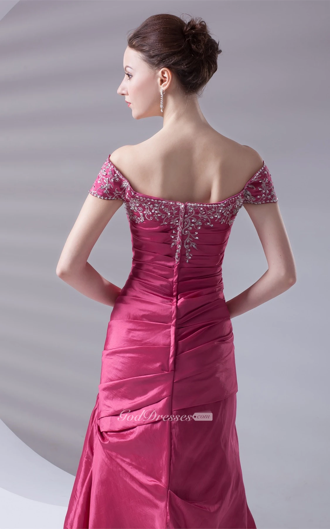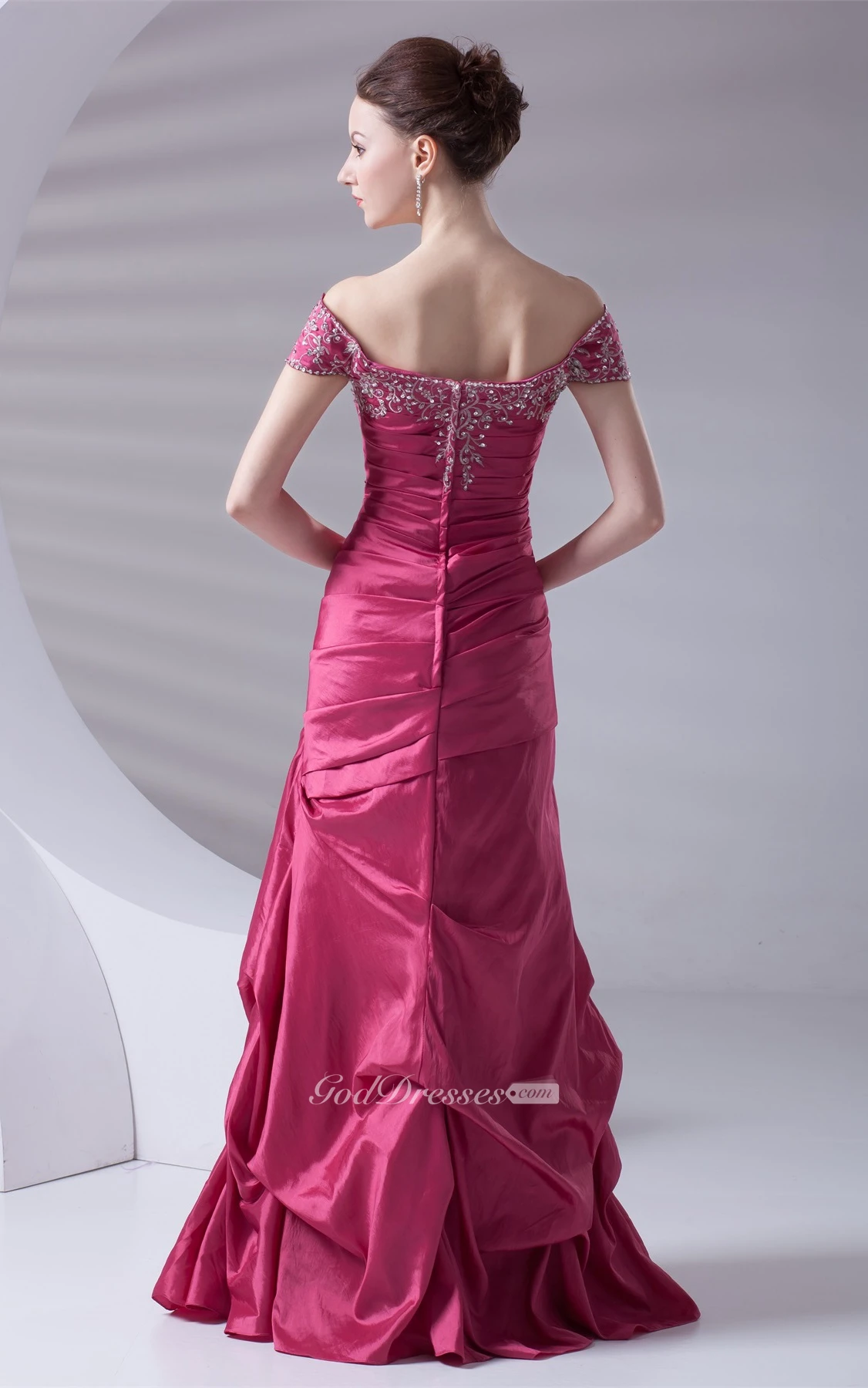 Caped-Sleeve Pick-Up A-Line Taffeta Gown With Embroideries
