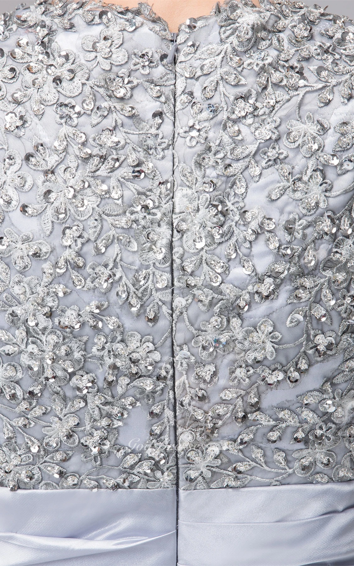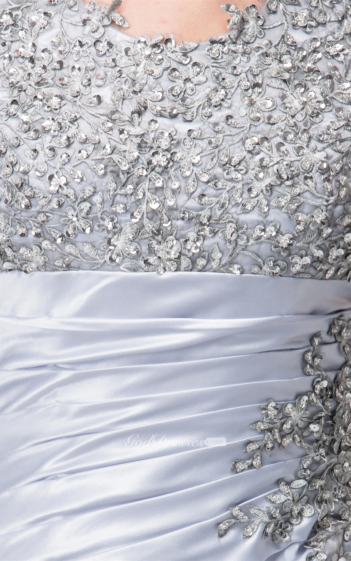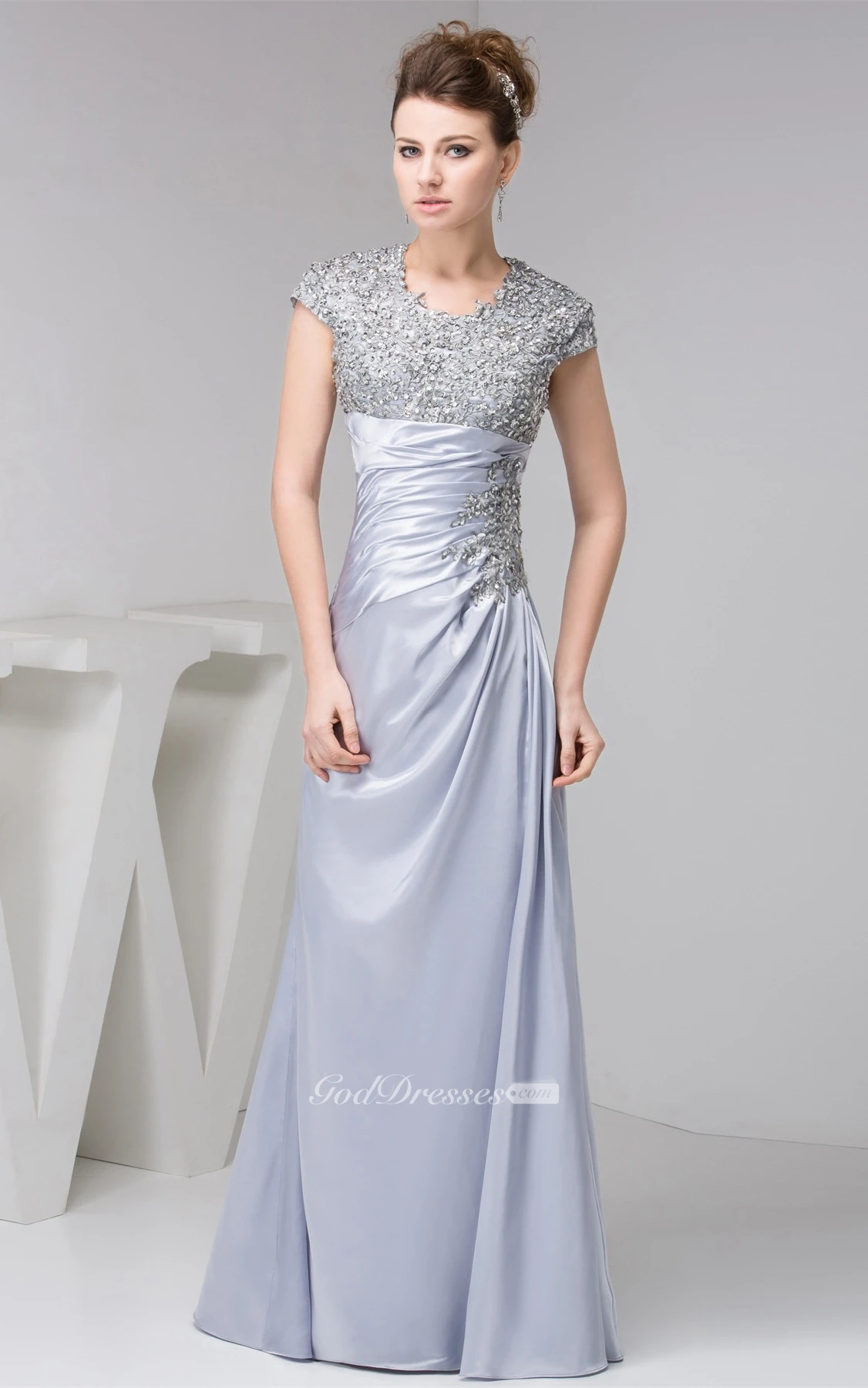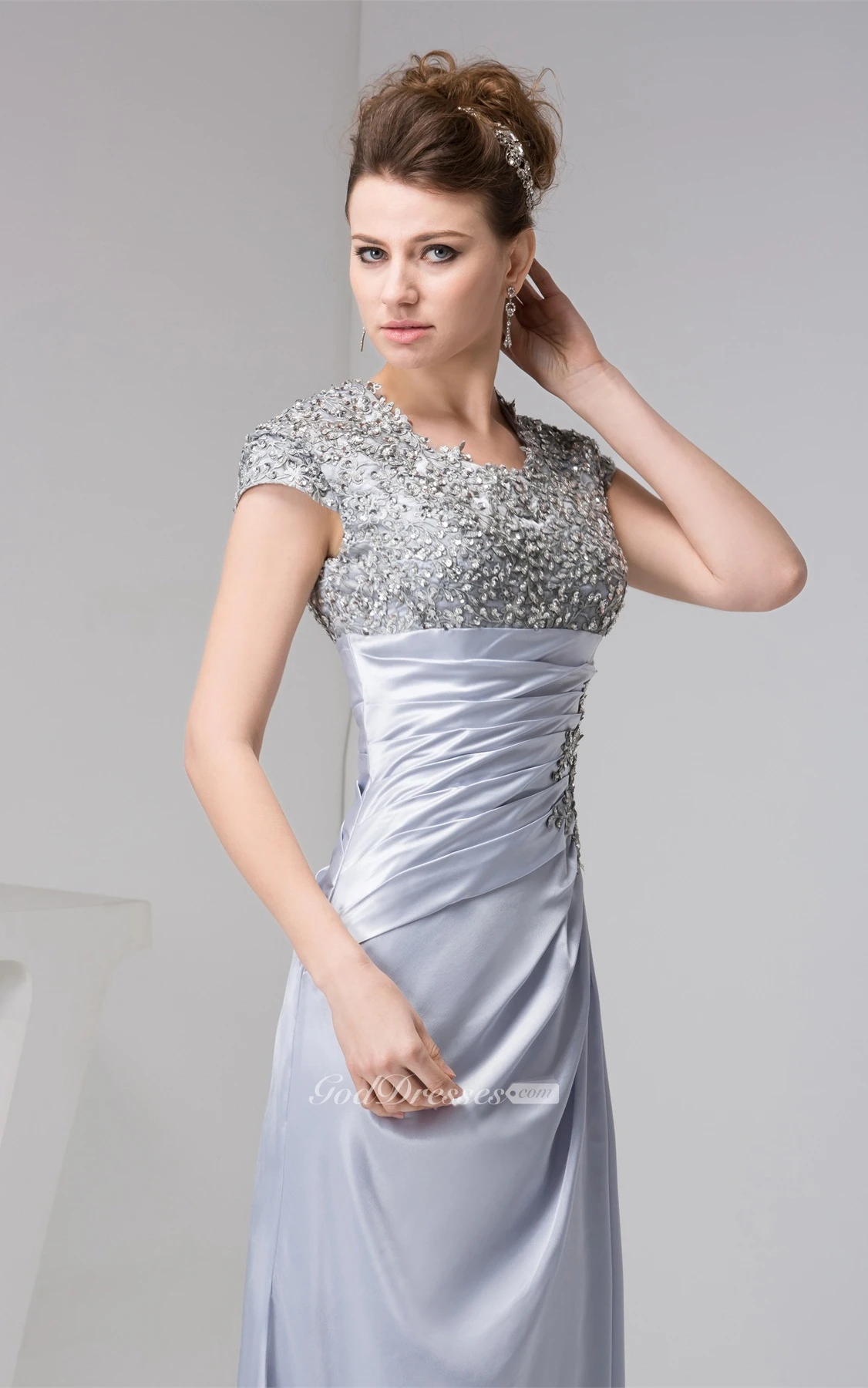 Caped-Sleeve Sheath Ruched Appliques and Dress With Jewels