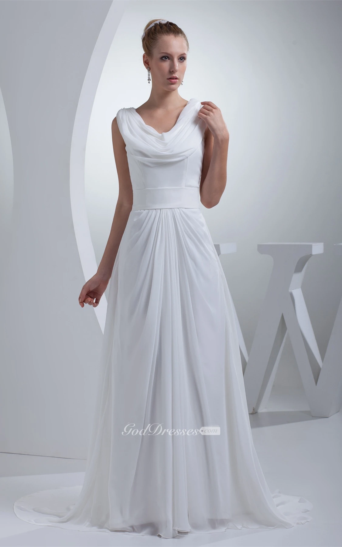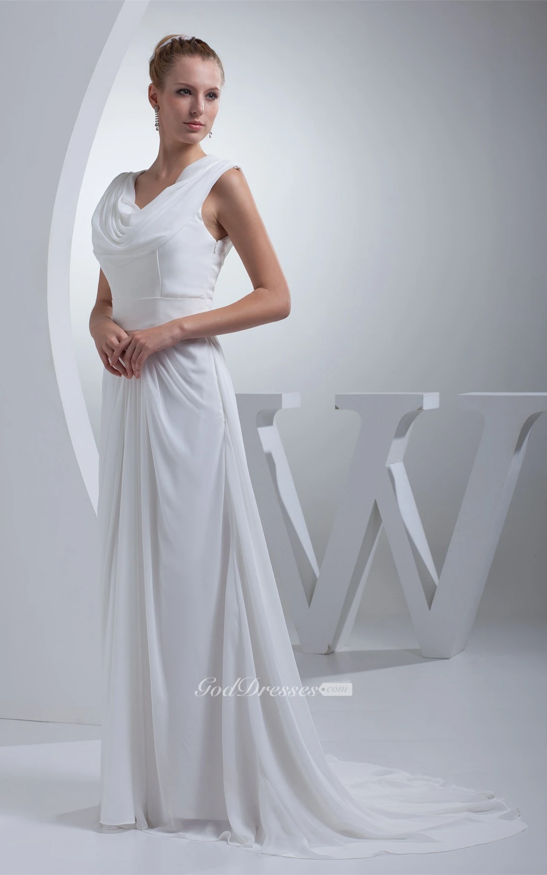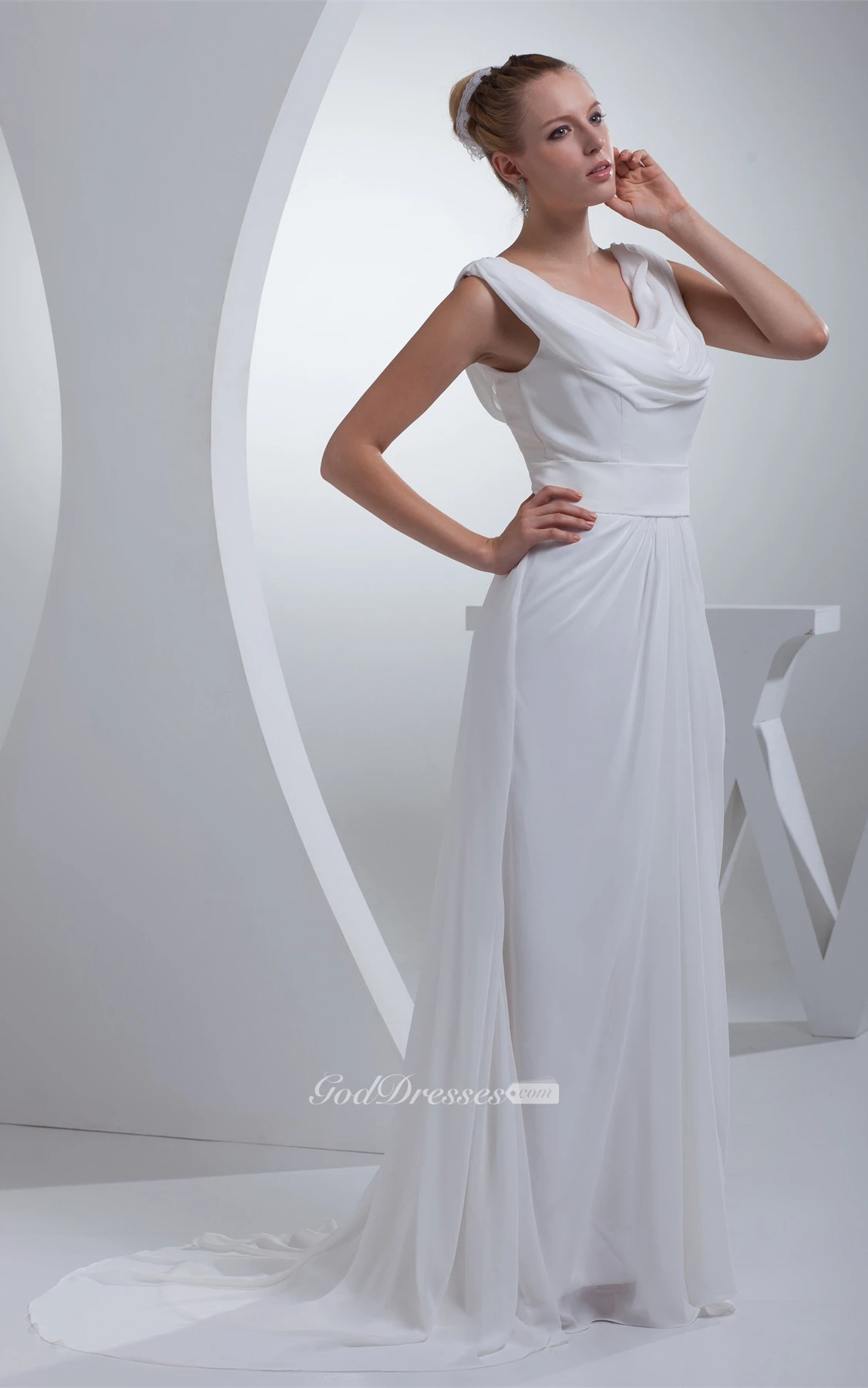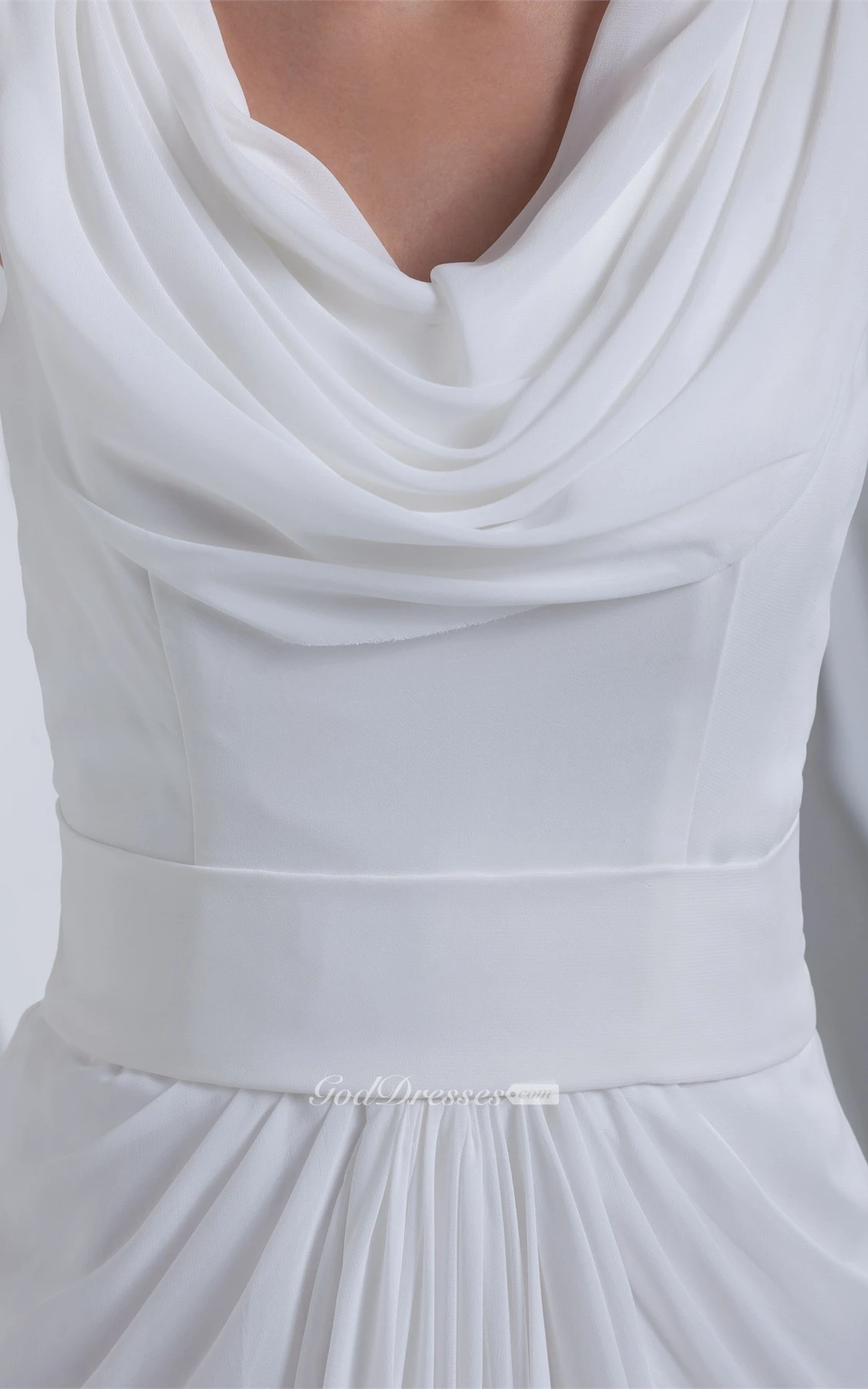 Capped Sleeve Ruffled Cowl Neck Dress With Pleat and Waistband