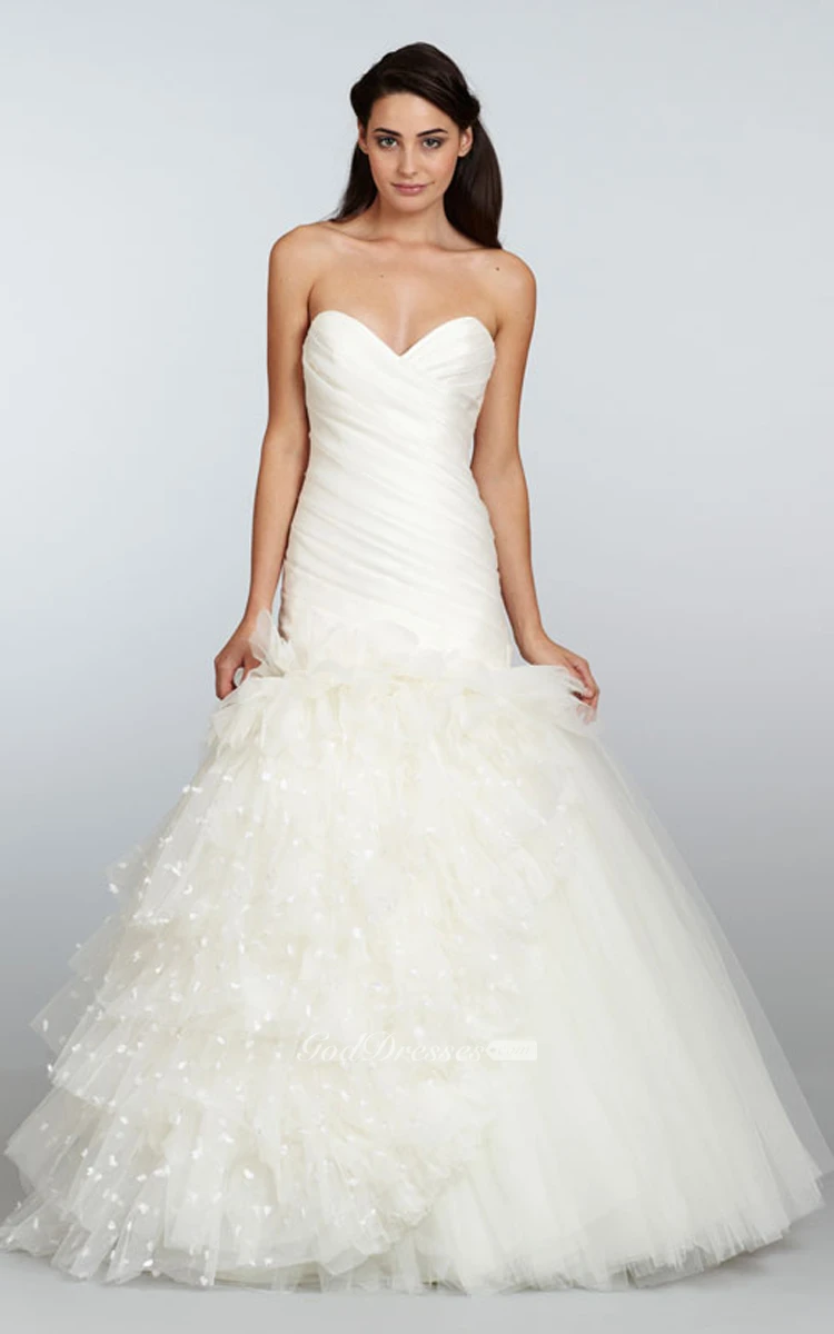 Captivating Asymmetrical Ruched Bodice Tulle Dress With Organza Petals