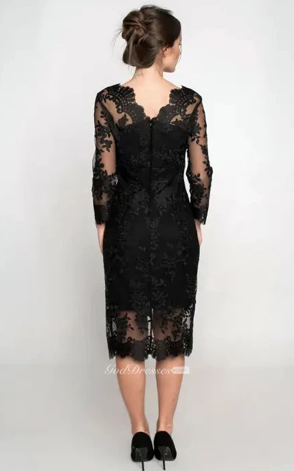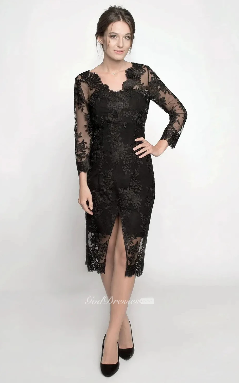 Casual 3/4 Length Sleeve Knee-length Pencil Lace Zipper Cocktail Dress with Split Front