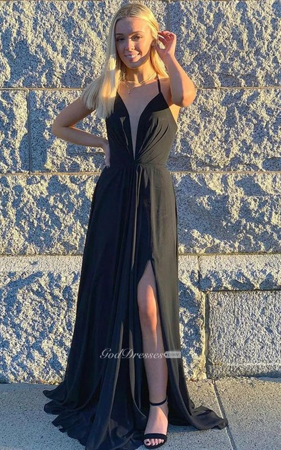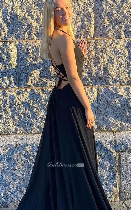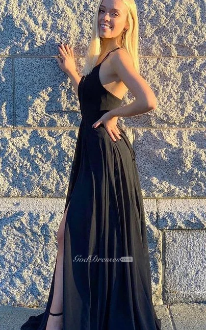 Casual A Line Jersey Floor-length Sleeveless Open Back Evening Dress with Split Front