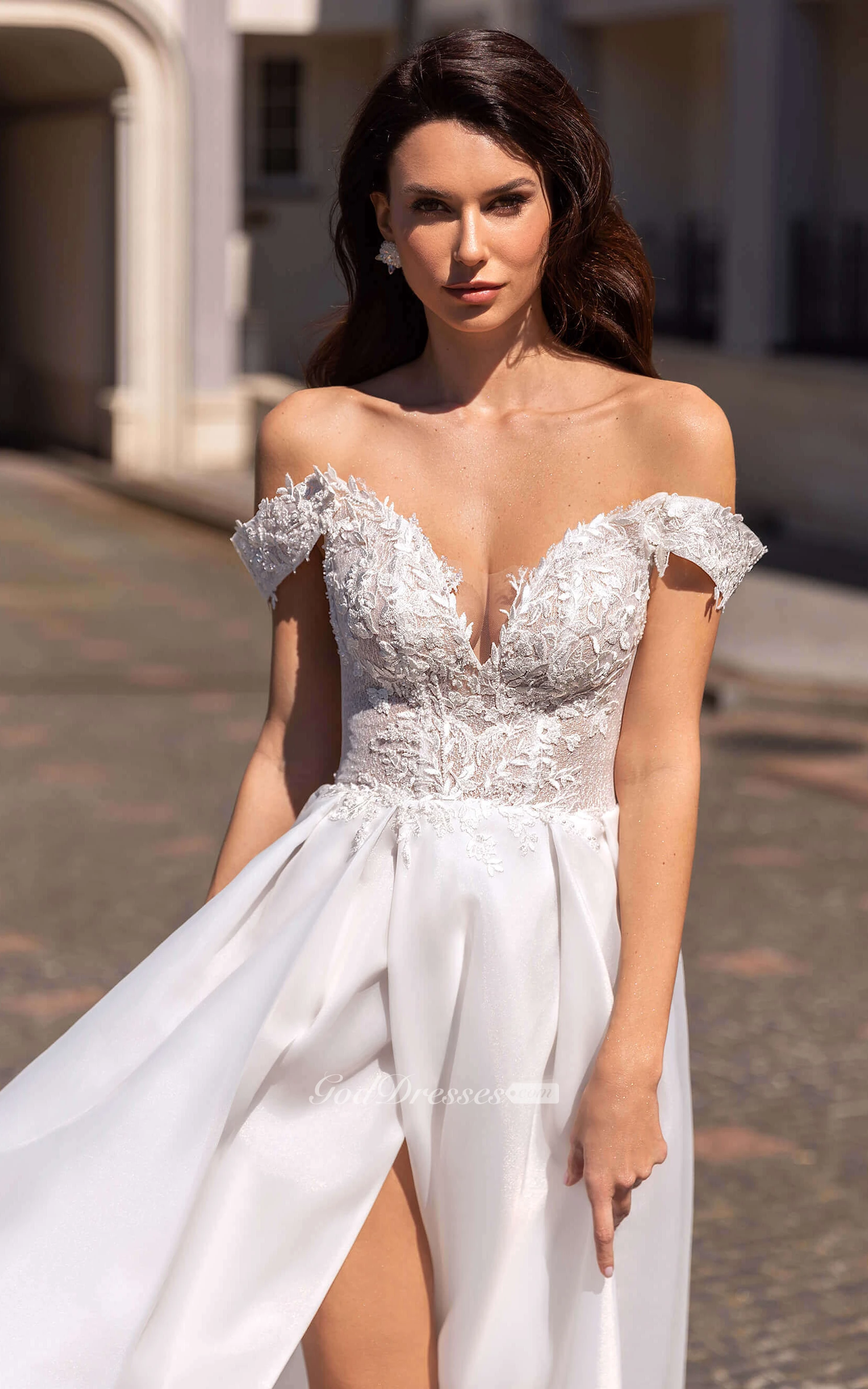 Casual A Line Lace Floor-length Sleeveless Open Back Wedding Dress with Split Front