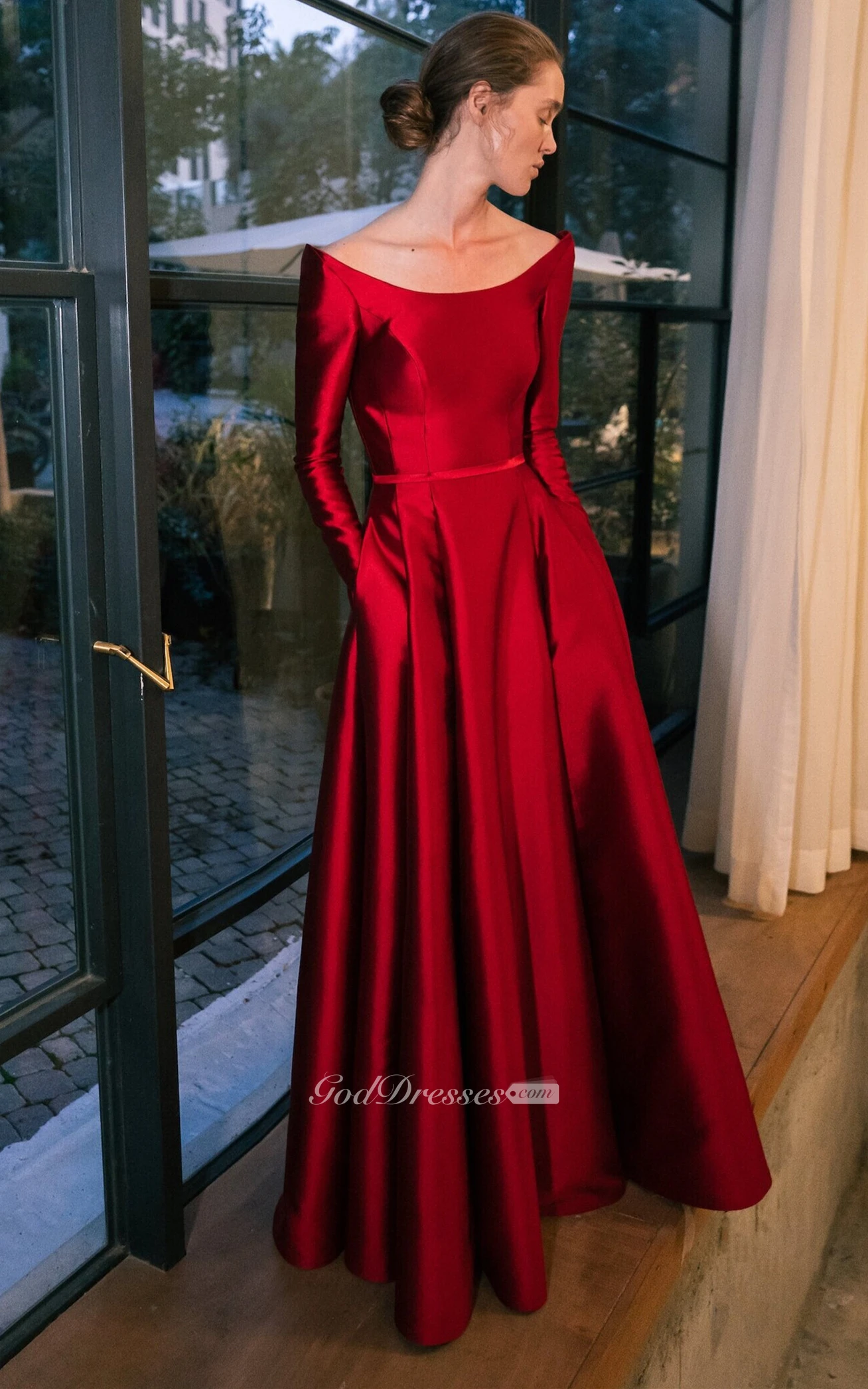 Casual A Line Satin Prom Dress with Ruching and Pockets