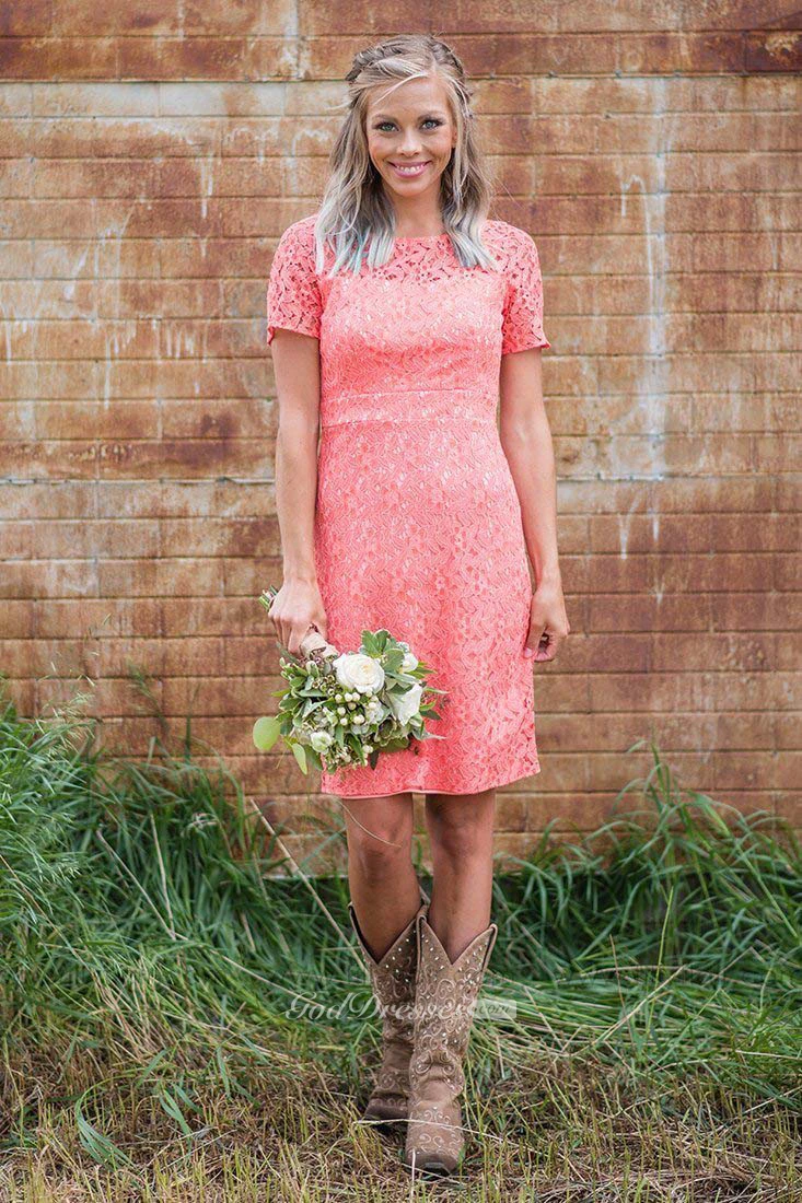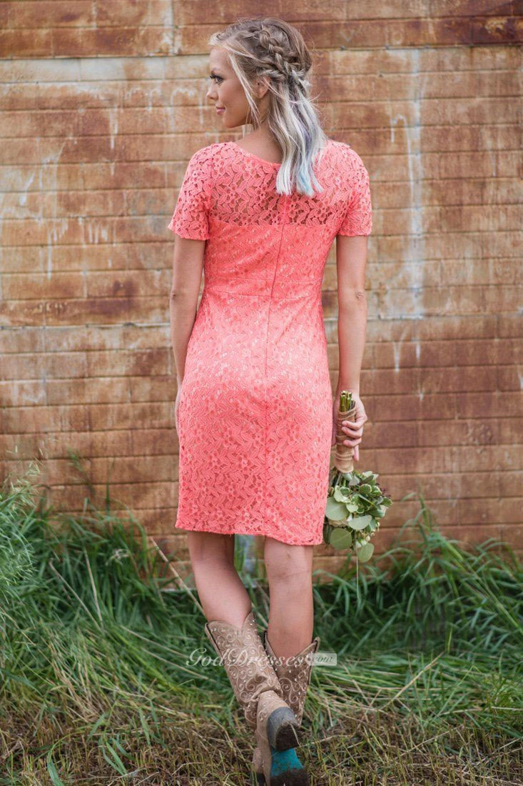 Casual Lace Short-sleeve Bridesmaid Dress with Zipper Back