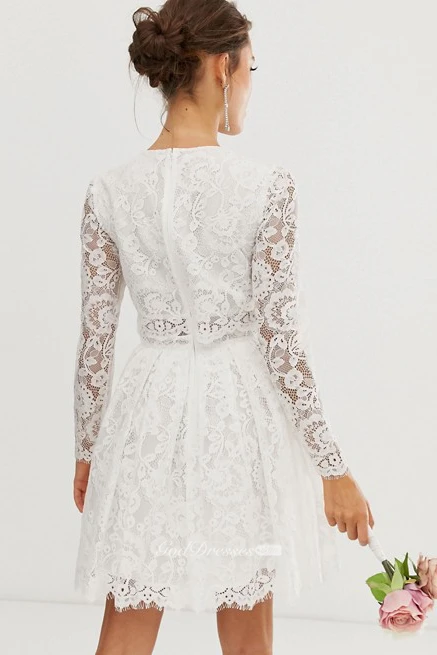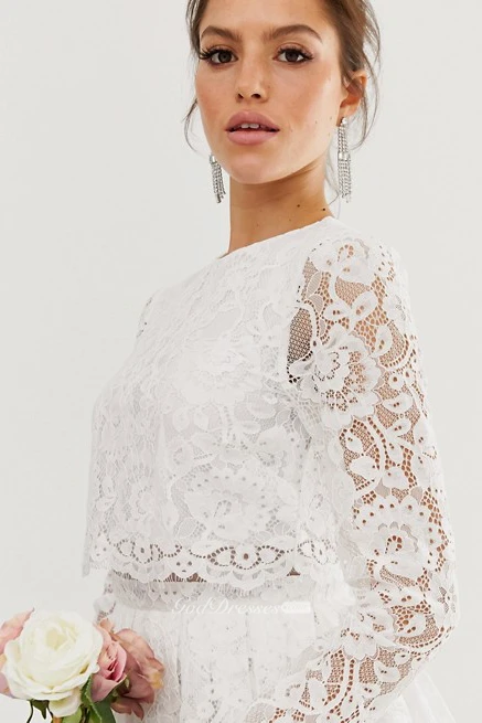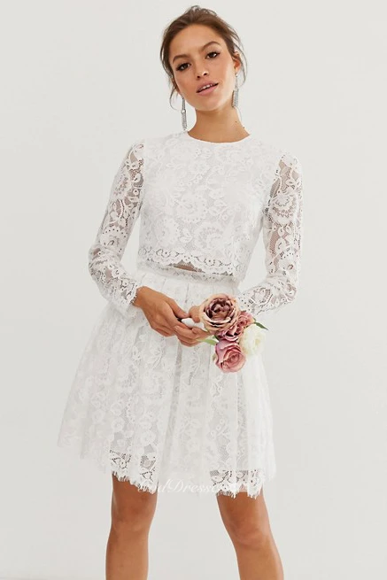Casual Lace Two Piece Long-sleeve Short Wedding Dress
