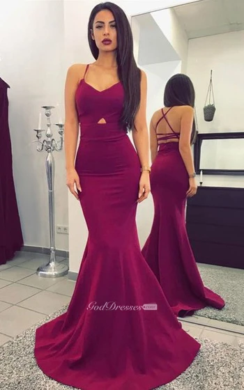 Casual Satin Mermaid Spaghetti Sleeveless Formal Dress With Cross Back