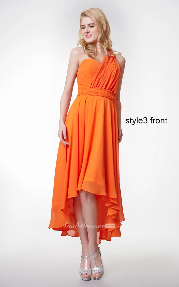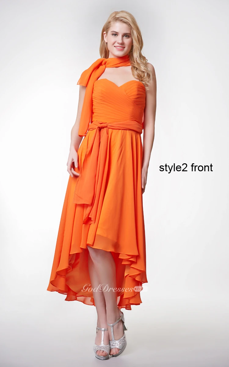 Changeable Sweetheart Ruffled High Low Chiffon Dress With Sash