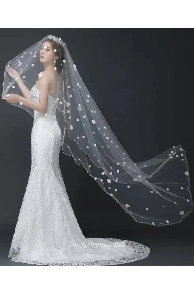 Chapel Tulle Bridal Veil With Flowers